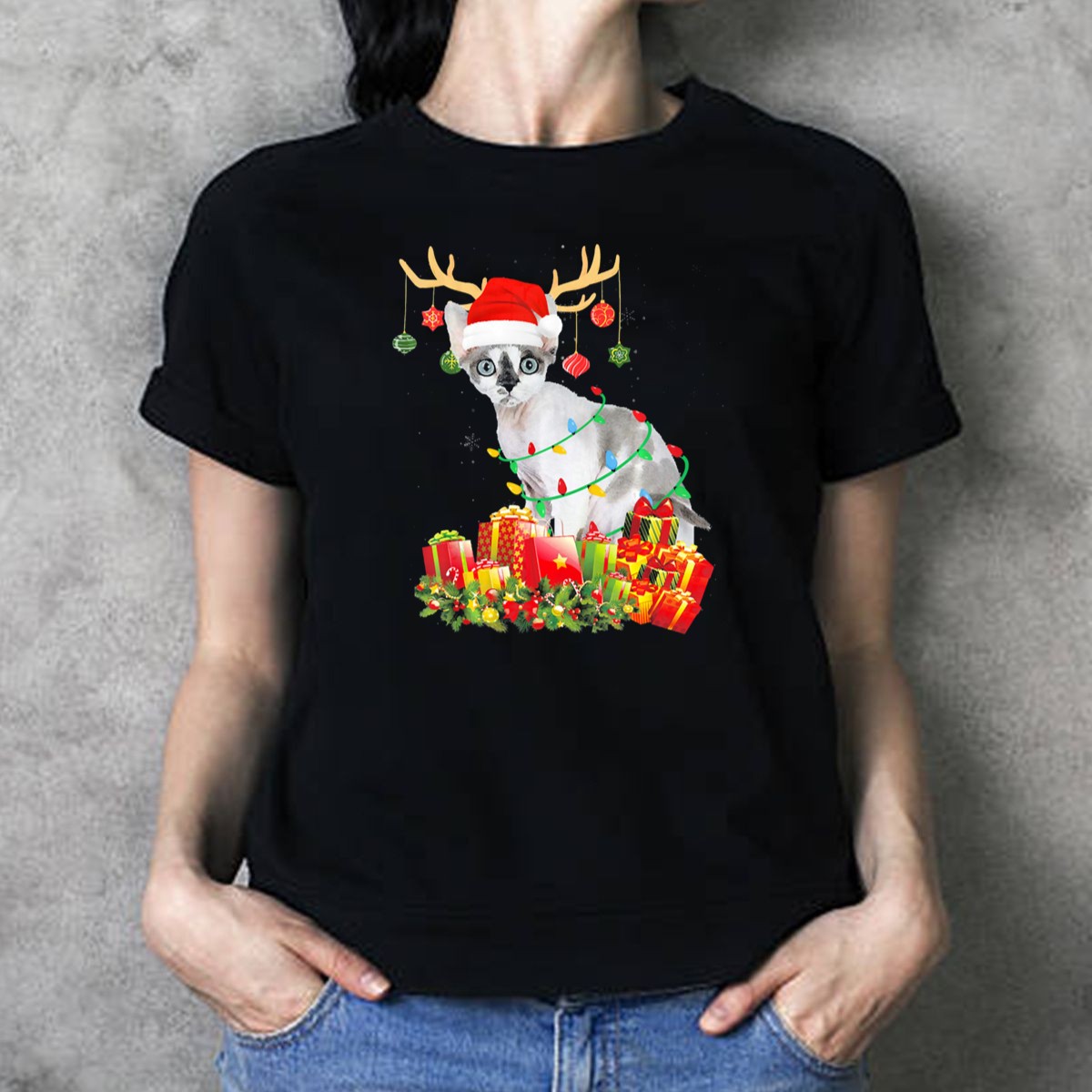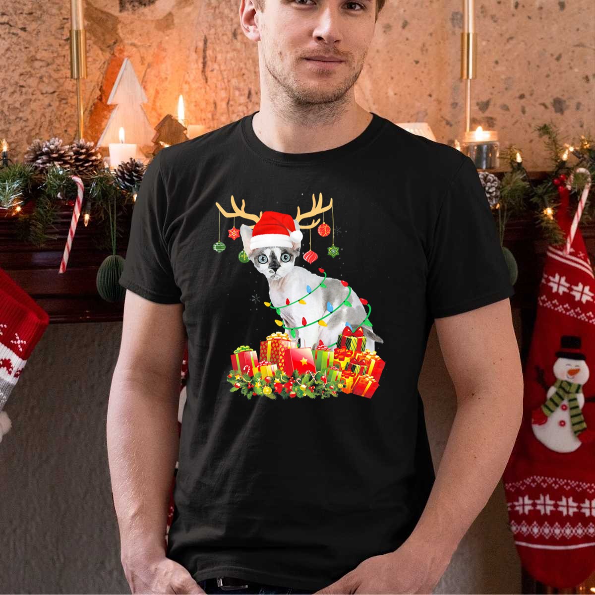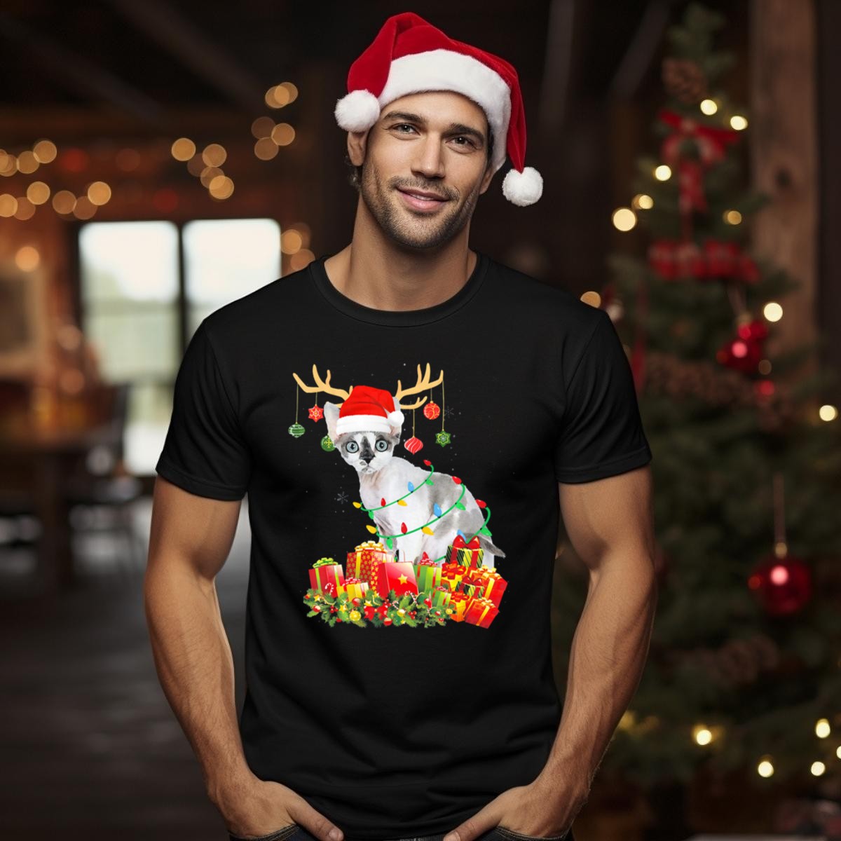 Celebrate the holiday season in style with our Devon Rex Cat Reindeer Santa Hat Christmas T-Shirt! Perfect for cat lovers and festive souls alike, this shirt features an adorable design that captures the whimsical spirit of the holidays. Whether you’re attending a themed party, decorating your home, or simply enjoying a casual day out, this shirt is a delightful way to showcase your love for your furry friends and the festive cheer. Made with care and printed in the USA, it’s a unique addition to your holiday wardrobe!