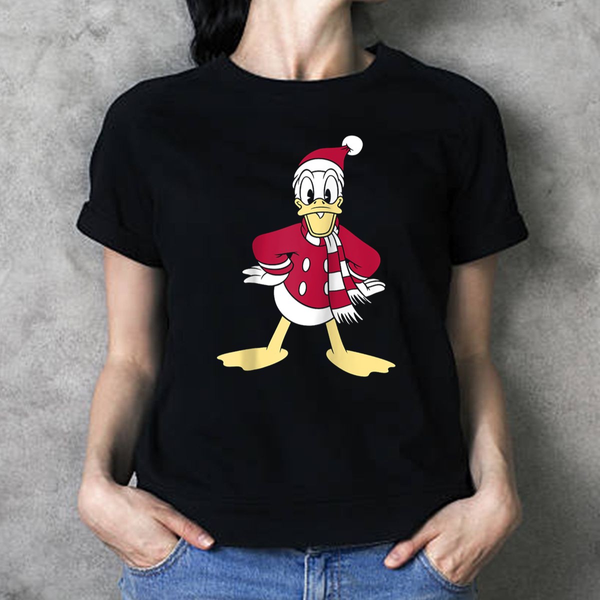 Celebrate the holiday spirit with our Disney Donald Duck Christmas Classic Portrait T-Shirt! Perfect for fans of all ages, this festive tee is designed for casual wear, themed events, or simply spreading cheer during the holiday season. Featuring a charming illustration of Donald Duck dressed in a Santa suit and scarf, this shirt combines comfort with a touch of nostalgia, making it a delightful addition to your wardrobe for all-season wear.