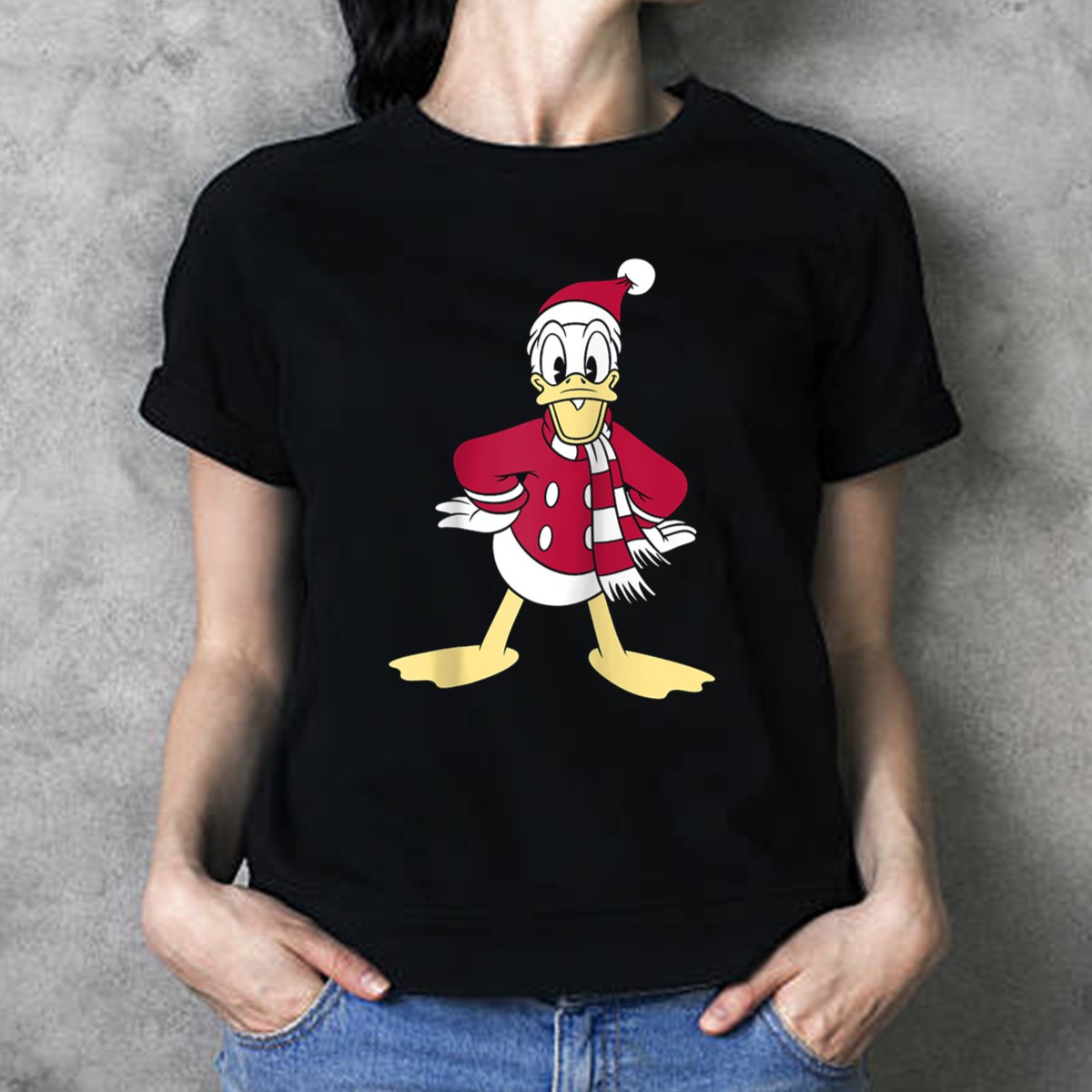 Celebrate the festive season with our Disney Donald Duck Christmas Classic Portrait Santa Suit And Scarf T-Shirt! This fun and whimsical design is perfect for Disney fans of all ages, bringing joy and cheer to your holiday gatherings. Whether you’re attending a themed event, a casual hangout, or simply enjoying daily wear, this shirt will make you stand out with its vibrant graphics and playful spirit. Made with care in the USA, it’s an ideal addition to your all-season wardrobe!