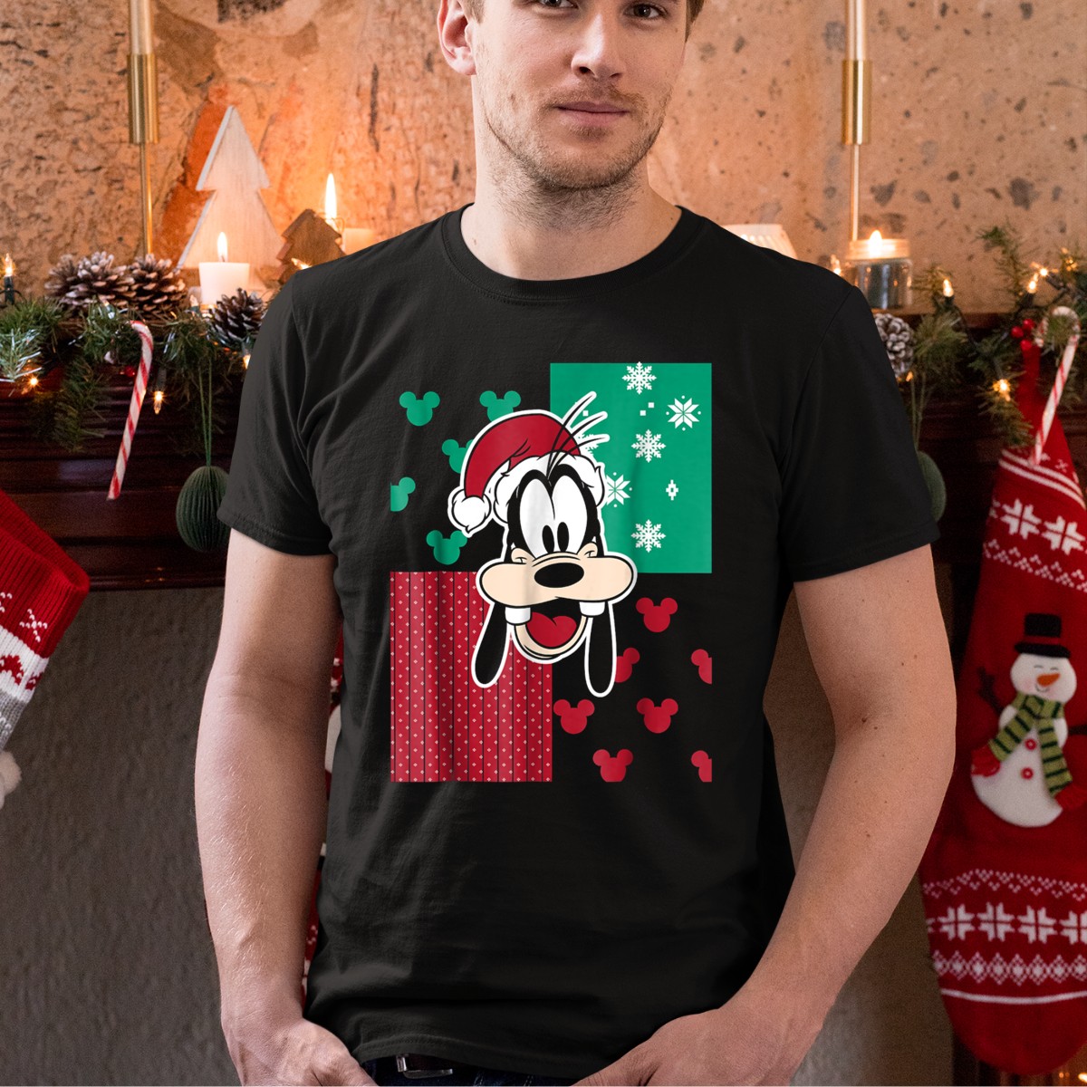 Celebrate the magic of the holidays with our Disney Goofy Christmas Santa Hat Mickey Mouse Holiday Snowflakes T-Shirt! Perfect for Disney fans of all ages, this playful tee brings a festive touch to any casual outing or themed event. Made for comfort and style, its unique design captures the fun spirit of the season, making it an ideal choice for family gatherings, holiday parties, or simply spreading cheer wherever you go!