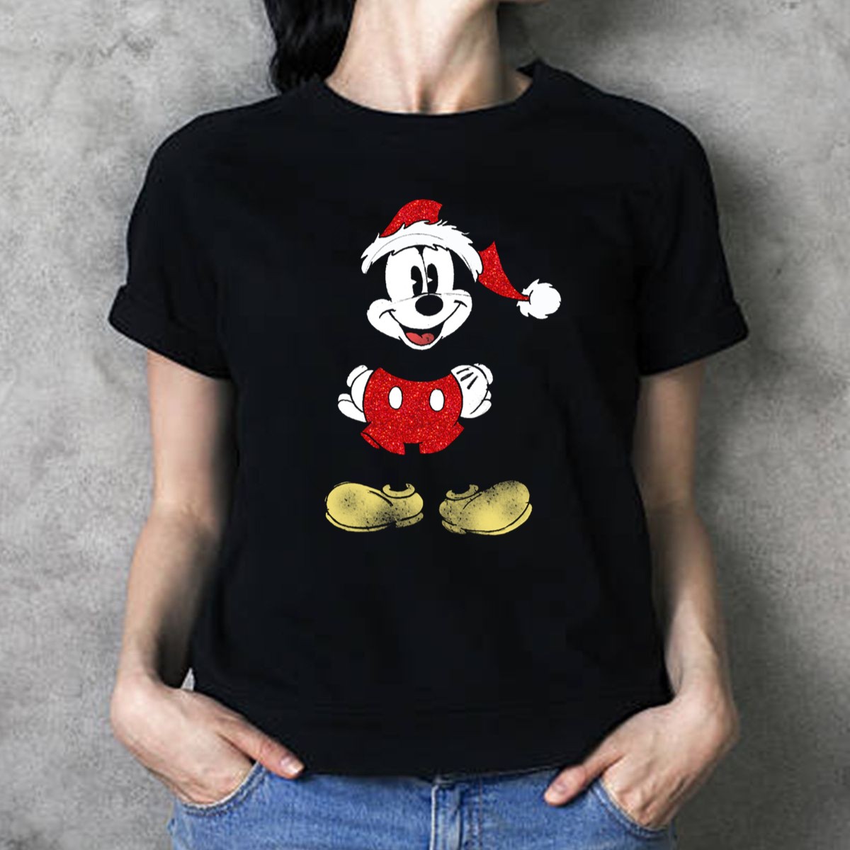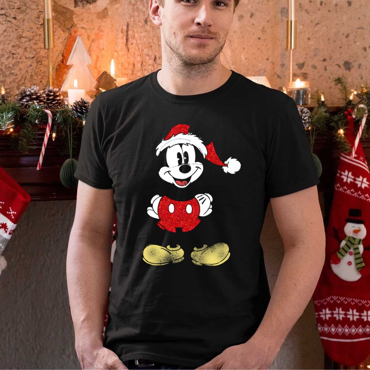 Be the first to review “Disney Mickey Mouse Cheerful Christmas Santa Hat Red And Black T Shirt”