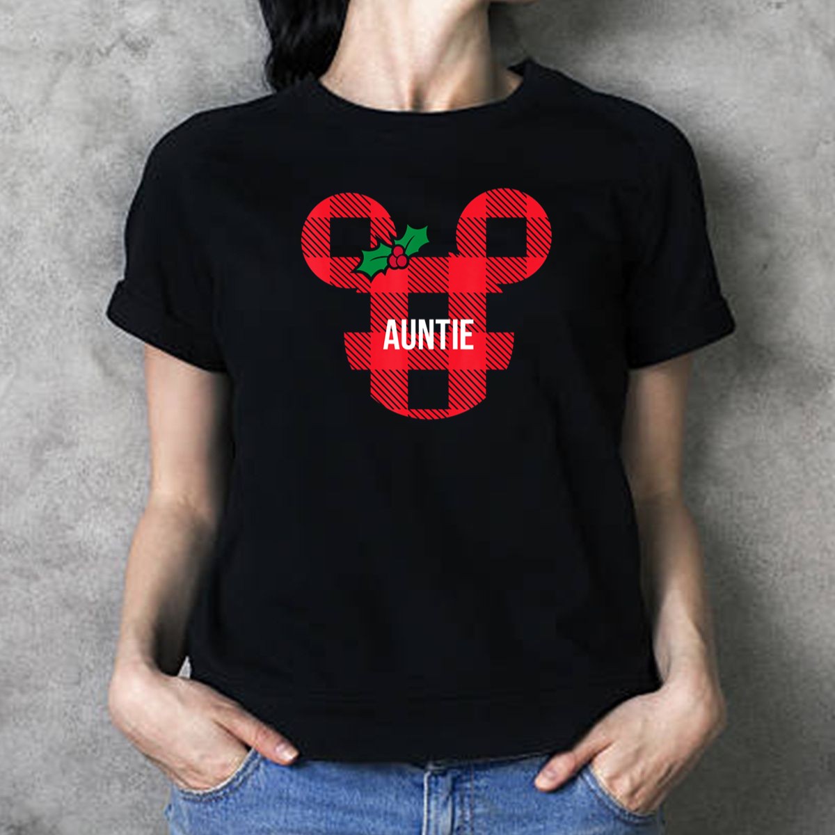 Celebrate the magic of family gatherings with our Disney Minnie Mouse Auntie Holiday Plaid Family Christmas T-Shirt! This fan-made design is perfect for proud aunties looking to spread holiday cheer at family events, themed parties, or casual outings. Crafted with care in the USA, this shirt combines style and comfort, making it a delightful addition to your festive wardrobe that showcases your love for Disney in a fun and unique way.