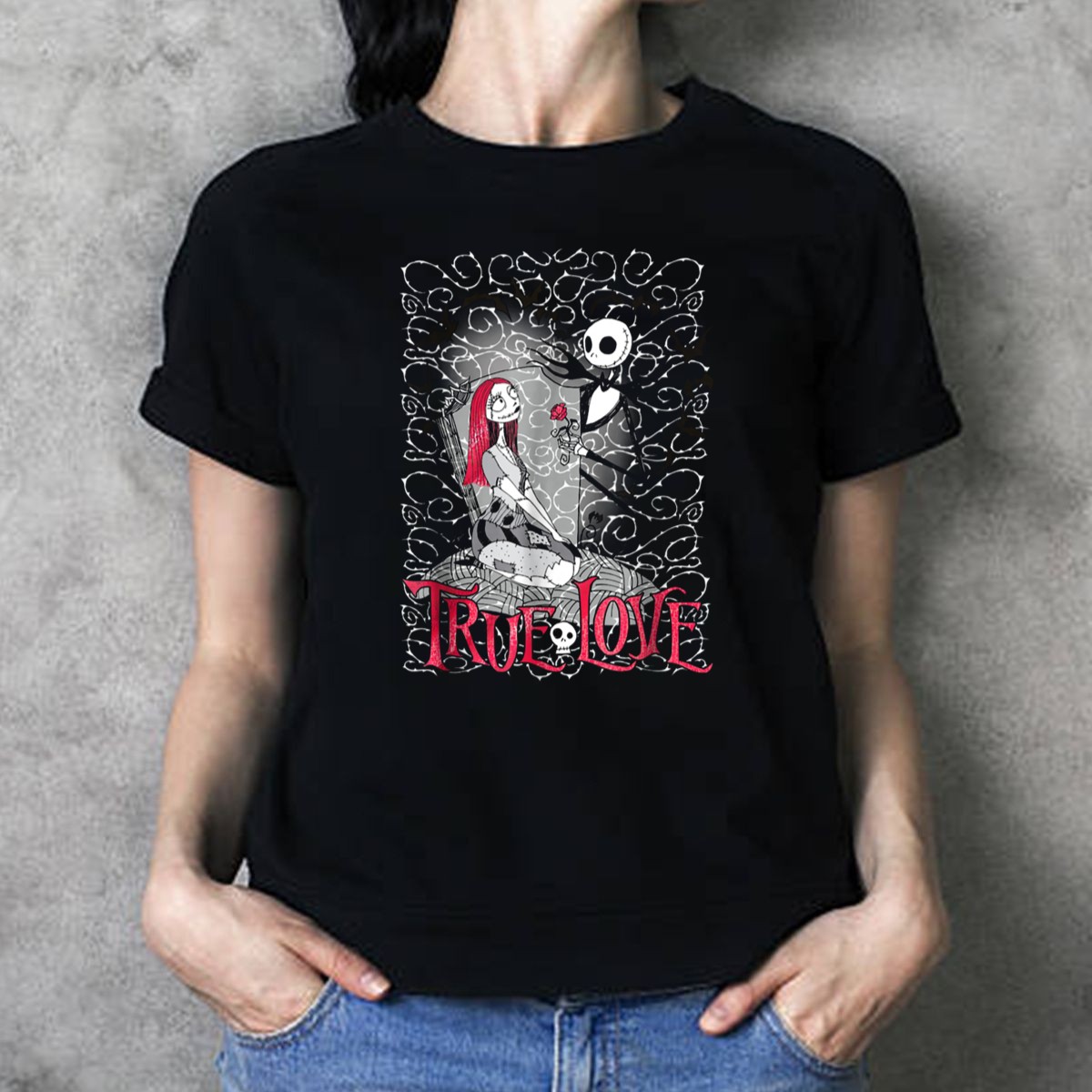 Embrace the magic of Halloween Town with our Disney Nightmare Before Christmas Jack And Sally True Love T-Shirt! Perfect for fans of Tim Burton’s iconic film, this shirt celebrates the timeless love story of Jack Skellington and Sally. Whether you’re attending a themed event, hanging out with friends, or just expressing your love for this classic, this shirt is a must-have for any Disney enthusiast. Crafted with care in the USA, it’s not just a piece of clothing; it’s a statement of your passion!