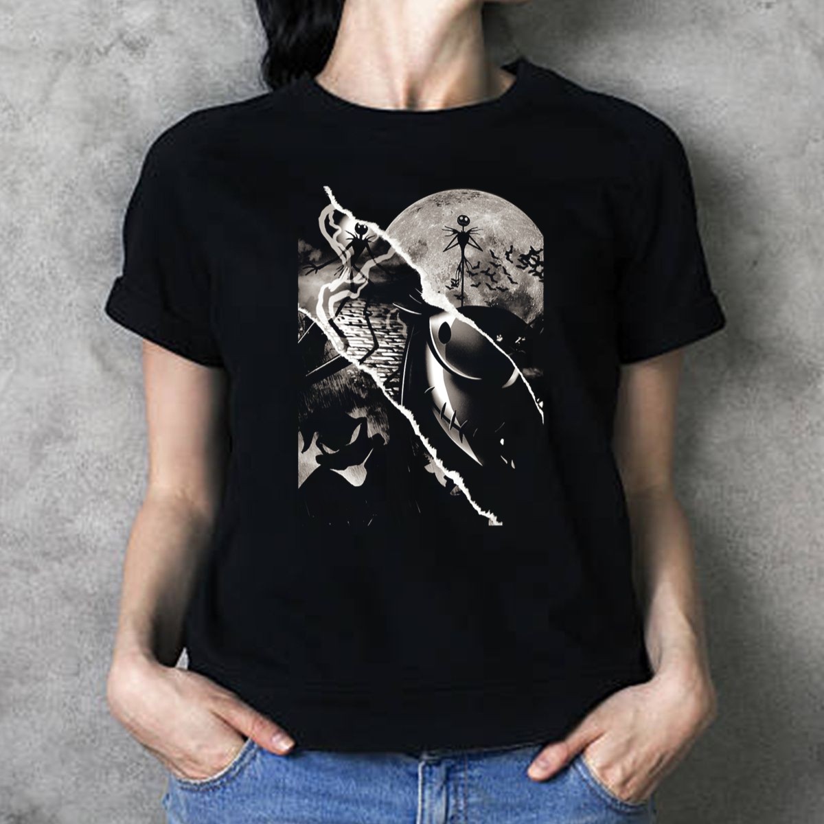 Embrace the enchanting world of Halloween Town with our Disney Nightmare Before Christmas Jack Skellington Full Moon Scenes T-Shirt. Perfect for fans of all ages, this T-shirt showcases the iconic Jack Skellington in a stunning graphic design that captures the magic and mystery of Tim Burton’s beloved classic. Whether you’re heading to a themed event, a casual outing, or simply want to add a touch of whimsy to your daily wear, this T-shirt is a must-have for any fan. Made in the USA, it combines comfort with a fan-made design that truly stands out.