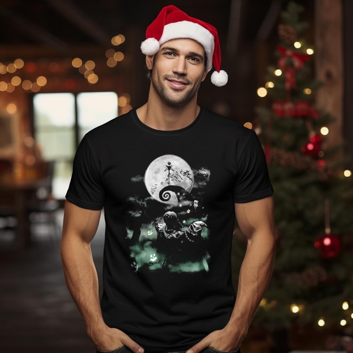 Get ready to embrace the spooky charm of Tim Burton’s classic with our Disney Nightmare Before Christmas Moonlit Scene T-shirt! Featuring the iconic Jack Skellington and the mischievous Oogie Boogie, this fan-made design is perfect for Disney lovers and fans of all things Halloween. Whether you’re headed to a themed event, a casual outing with friends, or simply want to add a touch of whimsy to your daily wardrobe, this shirt will make a statement wherever you go. Crafted for comfort and style, it’s a must-have for any fan!