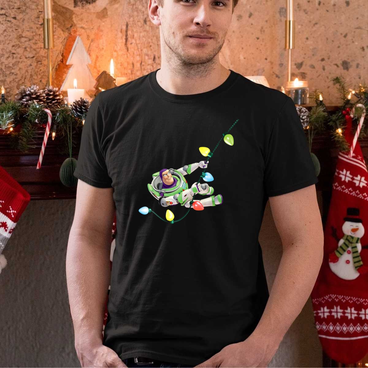 Celebrate the holiday spirit with our Disney Pixar Toy Story Buzz Lightyear T-Shirt, featuring a vibrant print of your favorite space ranger adorned with festive Christmas lights. This shirt is perfect for fans of all ages, ideal for casual wear, themed events, or simply spreading cheer during the holiday season. Made with love and printed in the USA, this fan-made design is sure to become a cherished addition to your wardrobe!