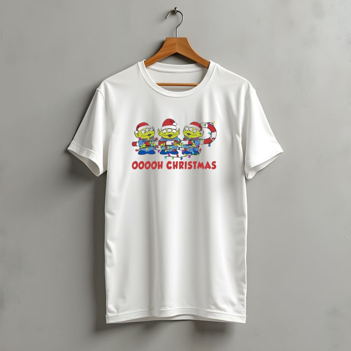 Get ready to celebrate the festive season with our Disney Toy Story Alien Ooooh Christmas T-Shirt! Perfect for fans of the beloved Toy Story franchise, this shirt features a playful design that showcases the adorable aliens in Santa hats surrounded by candy canes and twinkling lights. Ideal for casual wear, themed holiday parties, or simply spreading Christmas cheer, this fan-made shirt is printed in the USA and adds a touch of whimsy to your winter wardrobe.