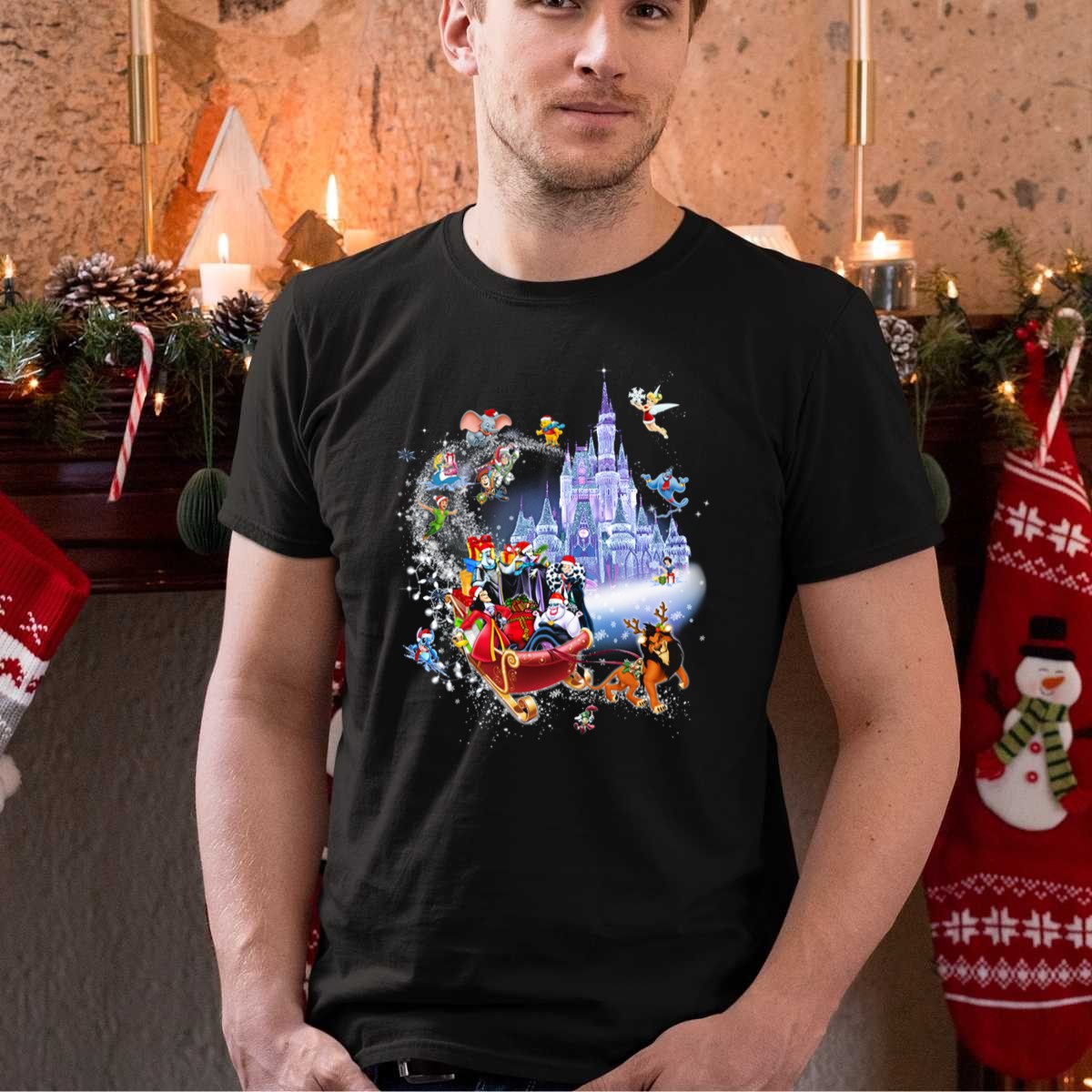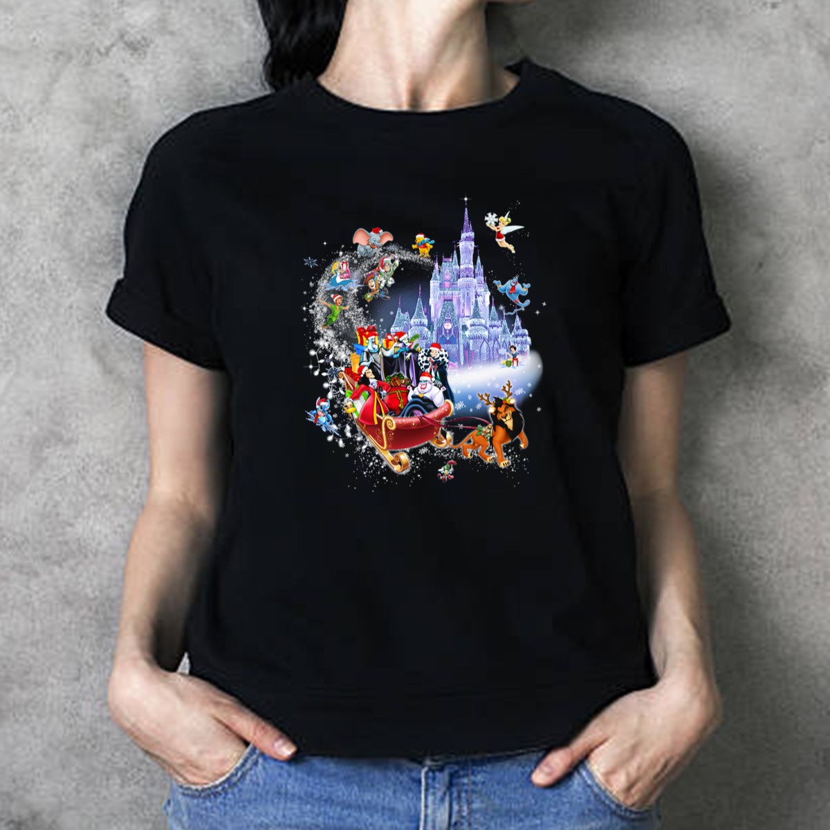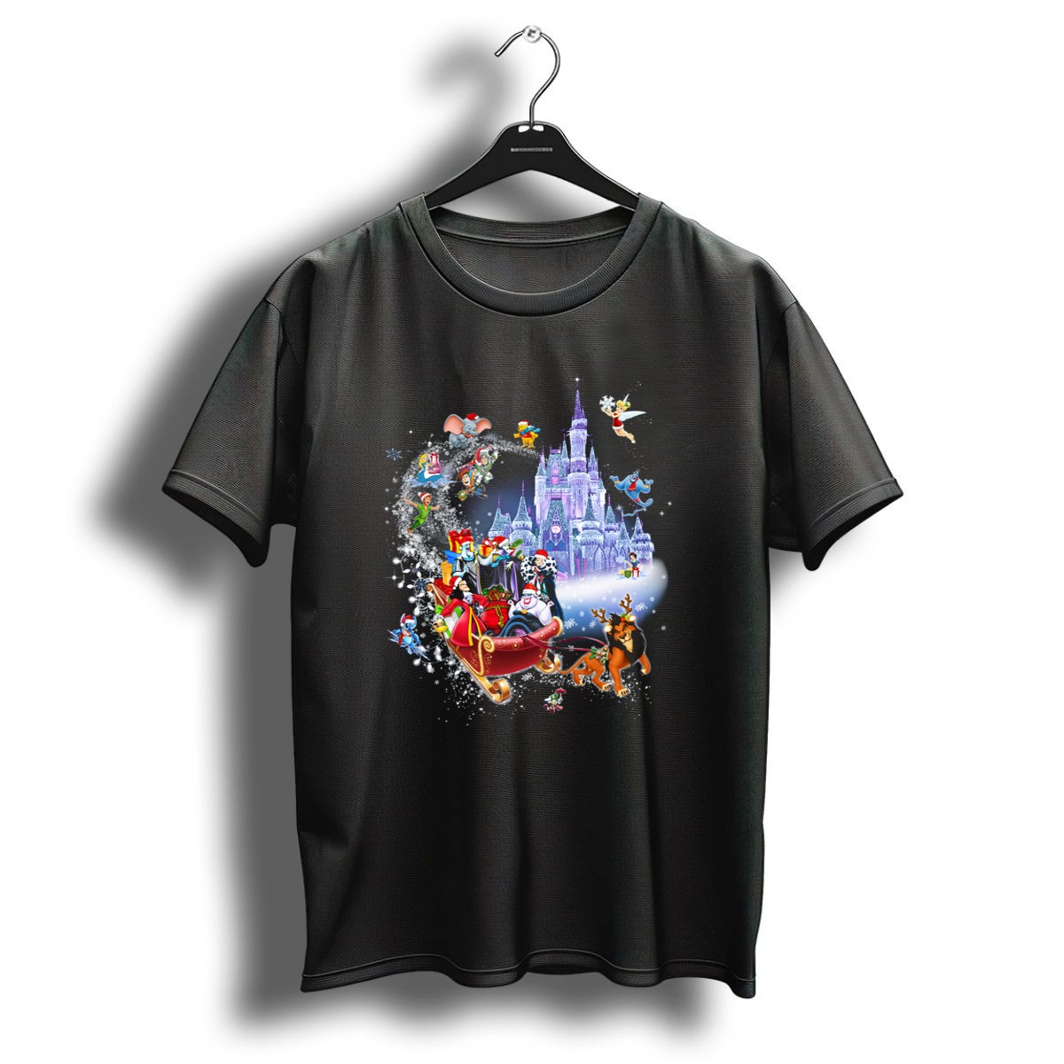 Embrace the holiday spirit with our Disney Villains Christmas T-Shirt, featuring a whimsical design of your favorite villains in front of a magical castle, complete with flying characters. Perfect for Disney fans and those who love to celebrate the season with a twist, this shirt is ideal for casual outings, themed events, or simply adding a touch of enchantment to your daily wear. Crafted with care in the USA, this shirt showcases a unique fan-made design that stands out in any crowd.
