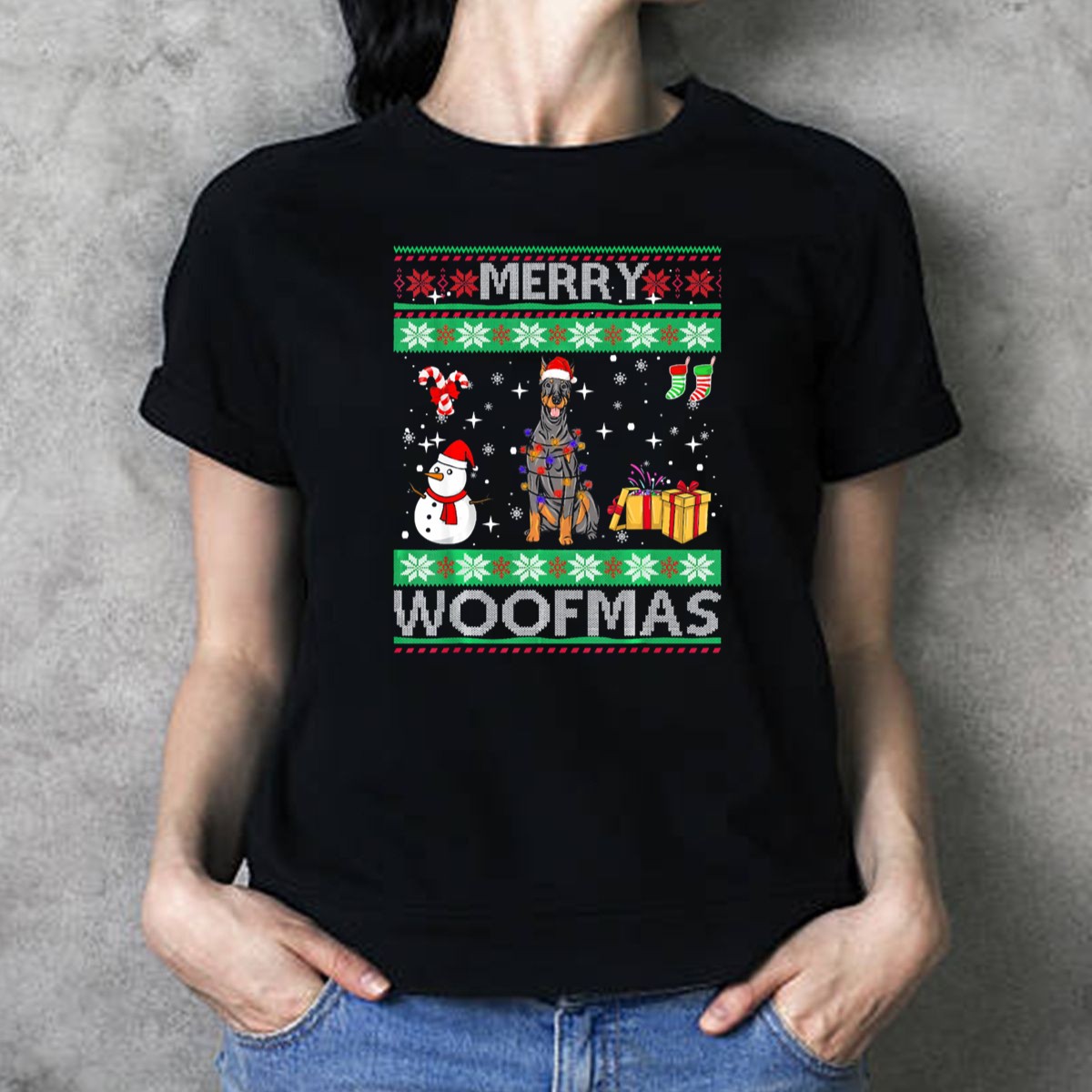 Celebrate the festive season with our Doberman Pinscher Dog Merry Woofmas Snowman Presents Candy Cane Christmas T-Shirt! Perfect for dog lovers and holiday enthusiasts alike, this charming shirt brings a playful touch to your casual wear. Whether you’re attending family gatherings, themed events, or simply spreading holiday cheer, this fan-made design, printed in the USA, ensures you stand out in style while showcasing your love for Dobermans. Embrace the spirit of Christmas and let your personality shine with this delightful tee!