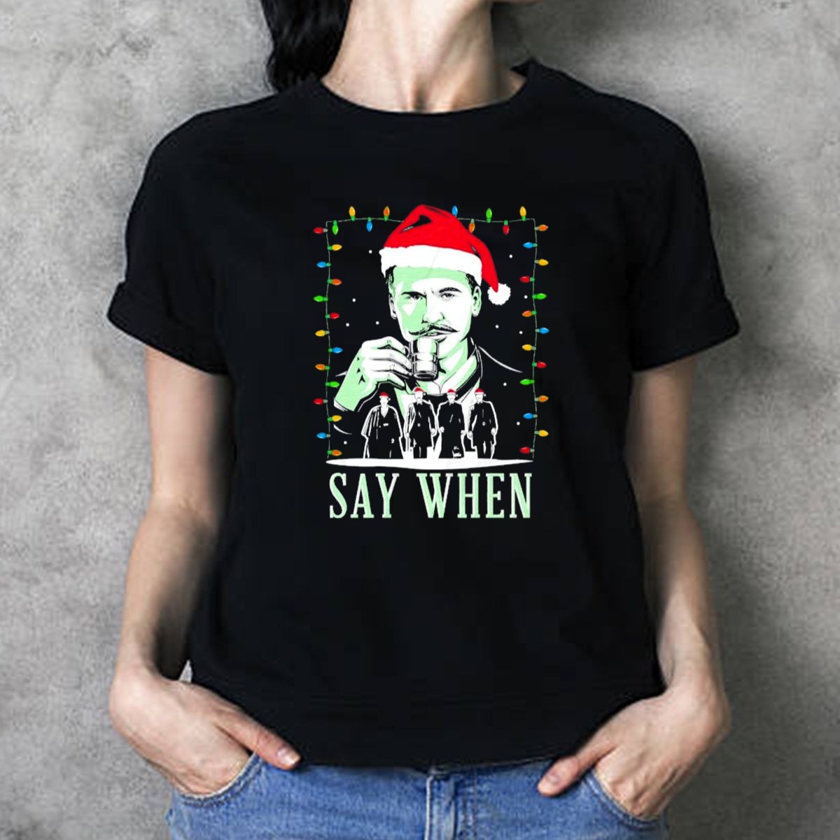 Doc Holliday Say When Christmas Lights Santa Hat T Shirt