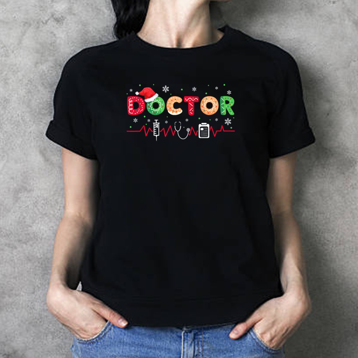 Celebrate the holiday season with our Doctor Santa Hat Christmas Costume T-Shirt, perfect for medical professionals and festive enthusiasts alike! This fun and unique design features a playful mix of Santa hats, stethoscopes, and snowflakes, making it ideal for casual wear, themed events, or daily festivities. Crafted for comfort and style, this shirt is sure to spread cheer wherever you go!