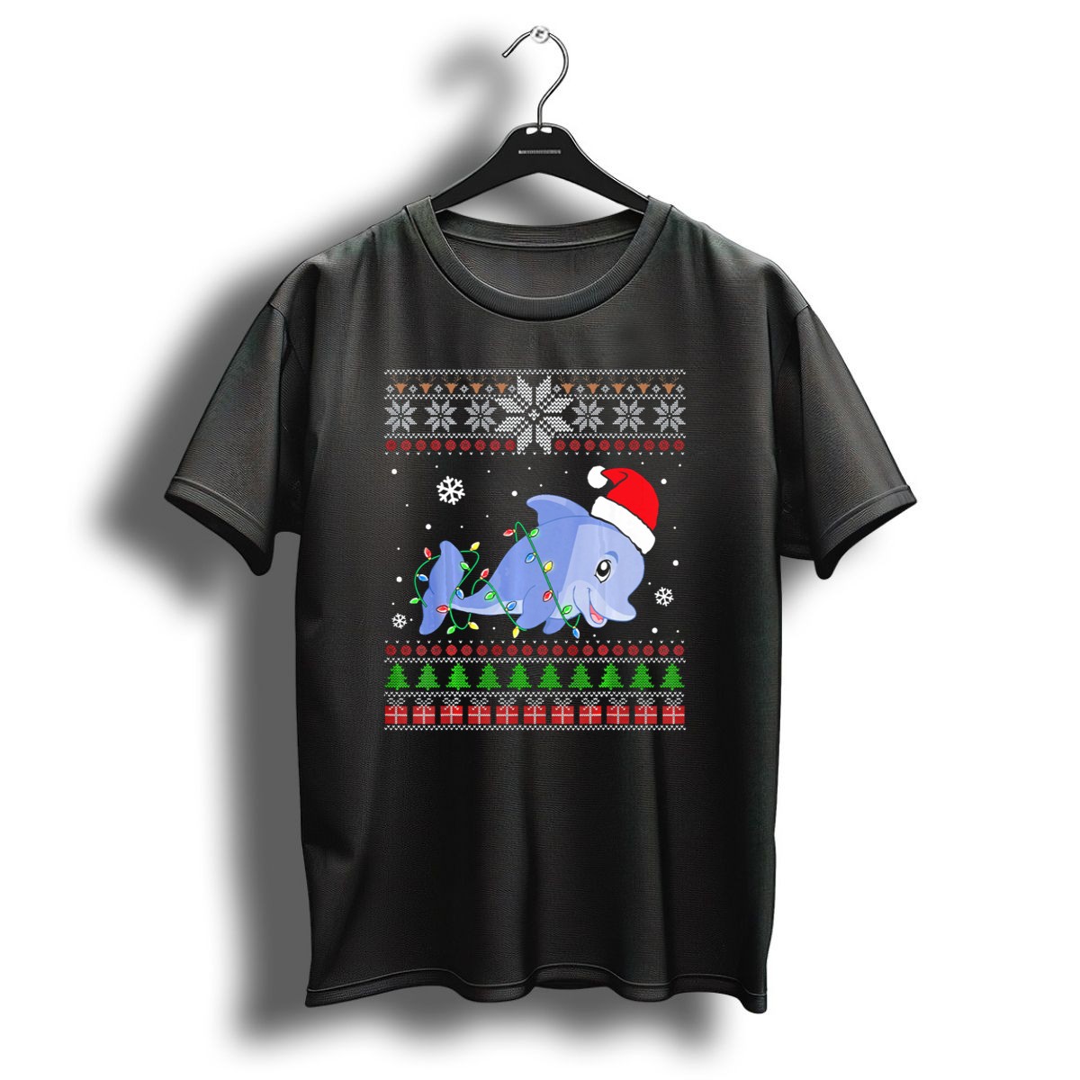 Celebrate the holiday spirit with our Dolphin Santa Hat Christmas Lights T-Shirt! Perfect for ocean lovers and festive souls alike, this unique design features playful dolphins adorned with Santa hats, twinkling Christmas lights, and charming snowflakes, making it an ideal choice for casual wear, themed events, or just spreading cheer during the holiday season. With its fan-made design proudly printed in the USA, this shirt is sure to make a splash at any gathering!