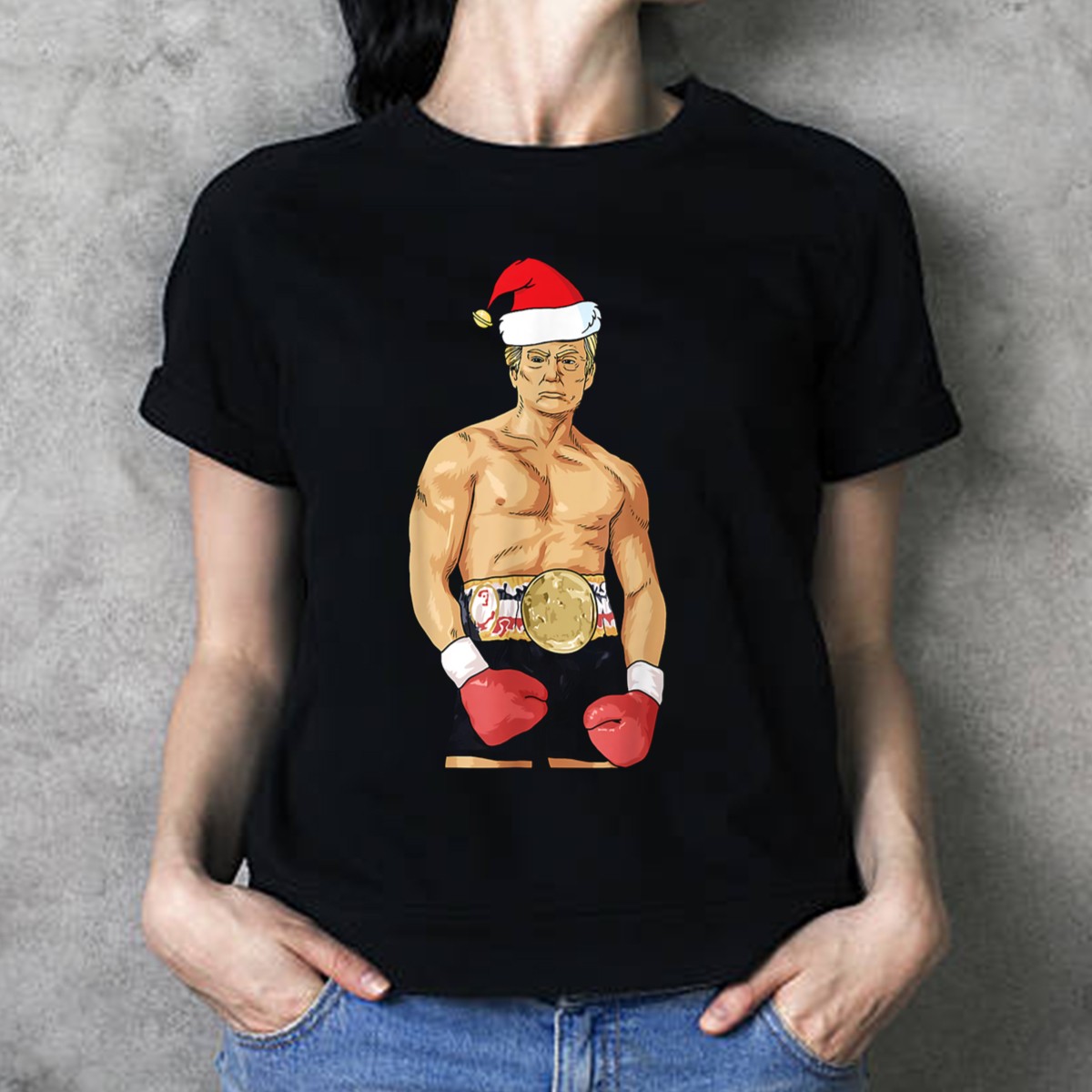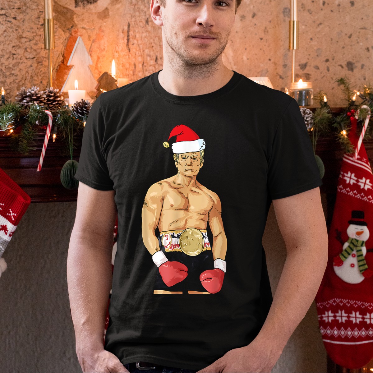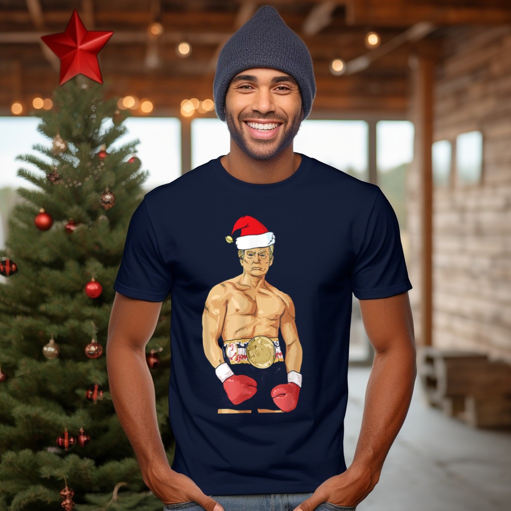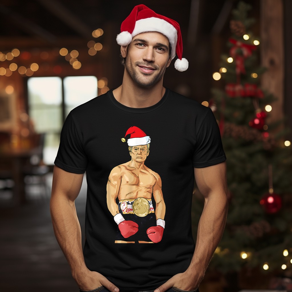 Get into the holiday spirit with our Donald Trump Santa Hat Boxing Champion Christmas T-Shirt! Perfect for fans of festive fun and lighthearted humor, this shirt is great for casual wear, themed events, or daily outings during the holiday season. Its unique fan-made design, printed in the USA, showcases a playful take on the Christmas spirit, making it a standout piece for any celebration.