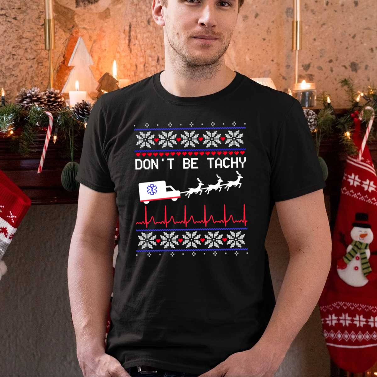 Celebrate the holiday season with our “Don’t Be Tachy Ambulance Reindeer” T-shirt, a perfect blend of festive cheer and medical humor! This fan-made design is ideal for healthcare professionals, ambulance crews, or anyone who appreciates a good pun. It’s great for casual outings, themed events, or just spreading holiday joy while staying comfortable. Printed in the USA, this shirt is a unique addition to your wardrobe that showcases your passion and humor during the festive season.