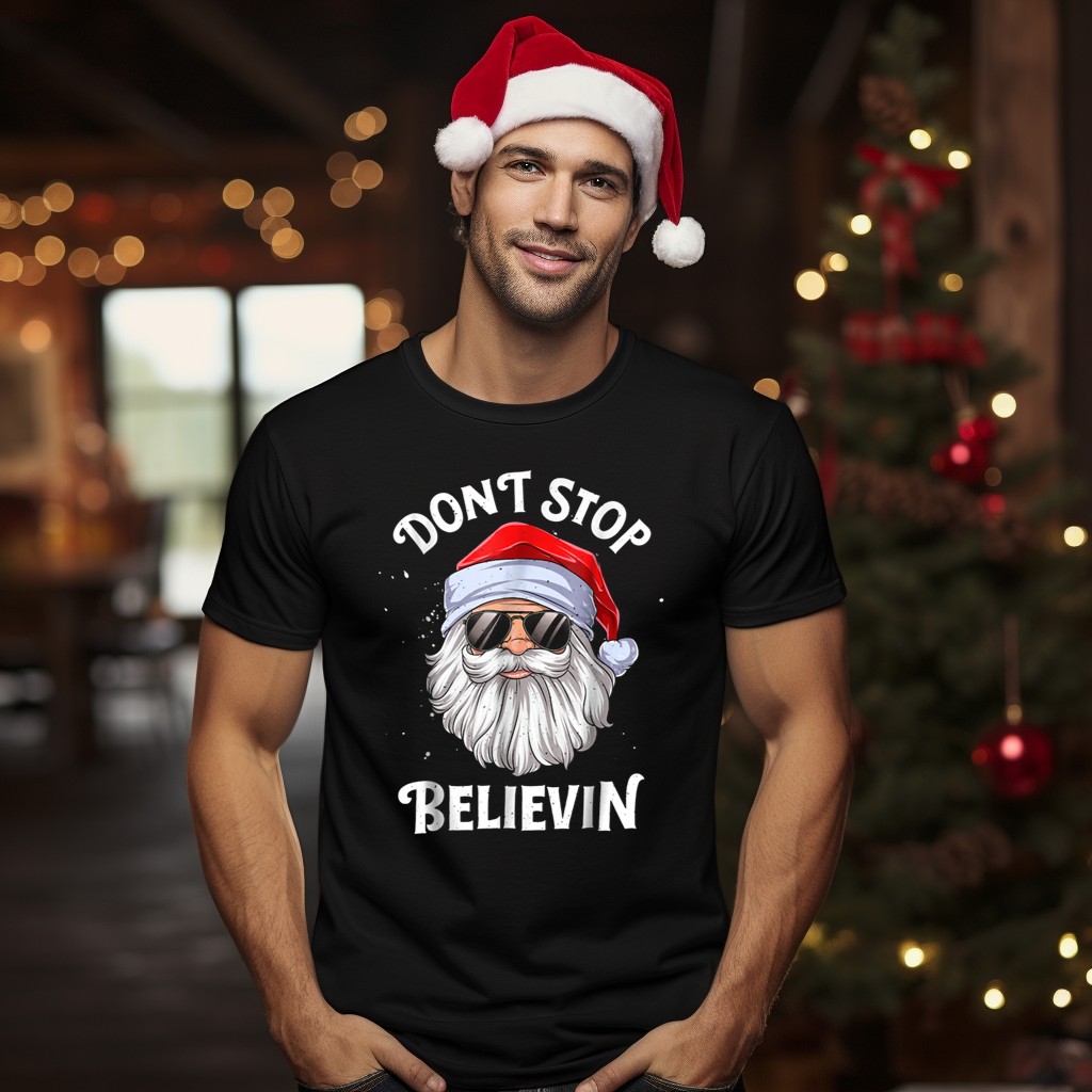 Get ready to rock around the Christmas tree with our “Don’t Stop Believin’ Santa” T-shirt! Perfect for boys who love to celebrate the holiday spirit with a fun twist, this shirt features a playful design that combines festive cheer with a cool, laid-back vibe. Ideal for casual wear, themed events, or just spreading joy during the holiday season, this tee is sure to become a favorite in their wardrobe. Made in the USA, it showcases a unique fan-made graphic that brings a smile to everyone’s face!