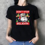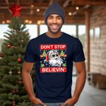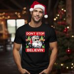 Celebrate the magic of the holiday season with our “Don’t Stop Believin’ Santa Christmas Trees Presents Snowflakes” T-Shirt! This fan-made design is perfect for anyone who loves to embrace the festive spirit, making it a delightful choice for casual outings, themed events, or simply adding a cheerful touch to your daily wear. Printed in the USA, this shirt combines comfort with a unique design that will surely spread joy wherever you go.