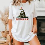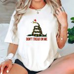 Celebrate the holiday season with a twist of patriotism in our “Don’t Tread On Me Christmas Santa Hat Gadsden Flag T-Shirt.” This fan-made design captures the spirit of freedom and festivity, making it perfect for those who want to express their love for country and Christmas cheer. Ideal for casual outings, themed events, or daily wear, this shirt is a unique addition to your wardrobe that blends holiday fun with a bold statement.