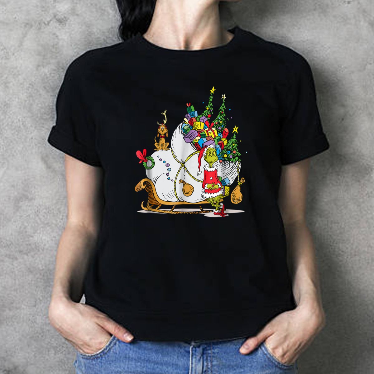 Get into the festive spirit with our Dr Seuss Grinch Max Presents And Christmas Trees Sleigh T-Shirt! Perfect for fans of the beloved holiday classic, this shirt brings whimsy and cheer to any casual occasion. Ideal for themed events, family gatherings, or just spreading holiday joy, this fan-made design is printed in the USA, making it a unique addition to your all-season wardrobe.