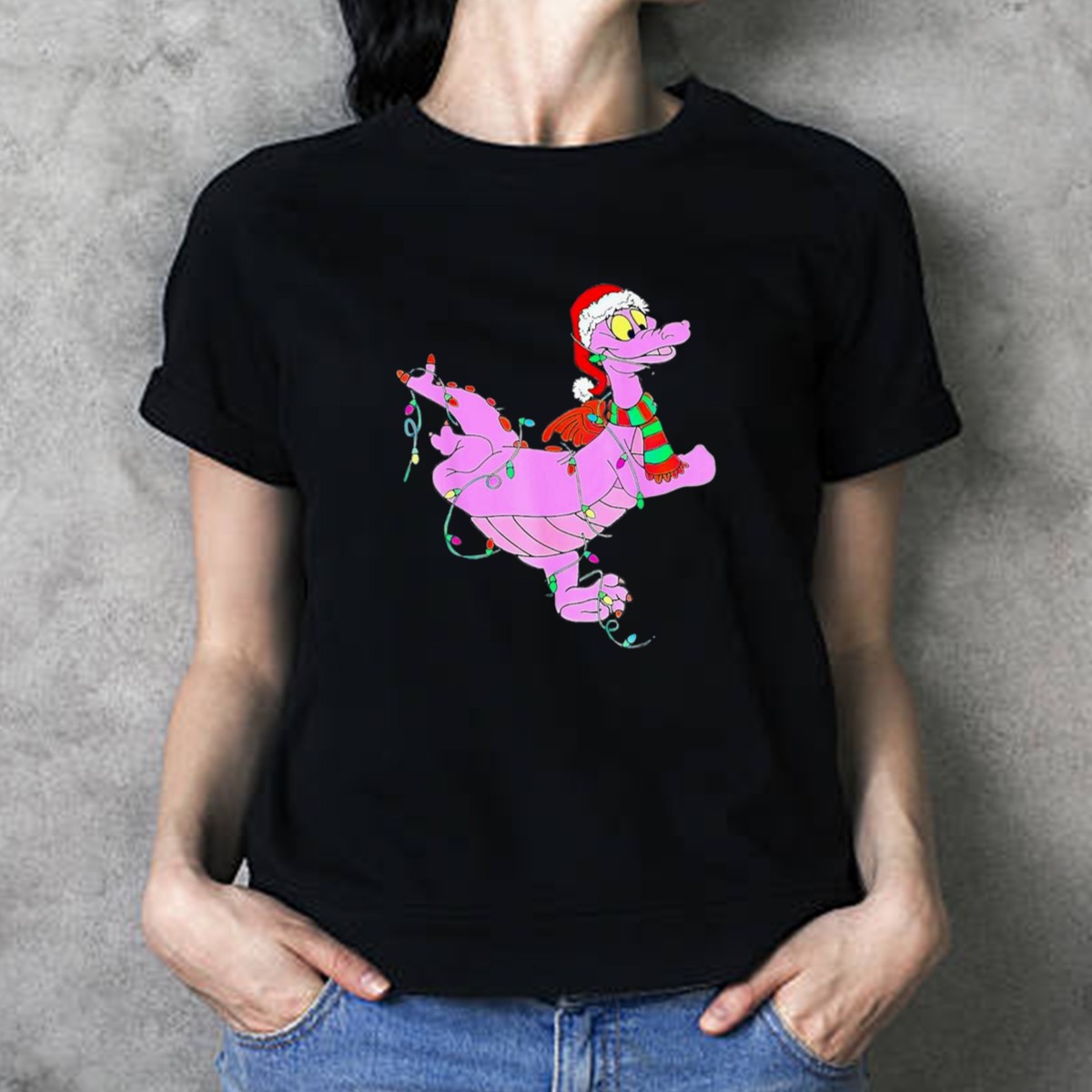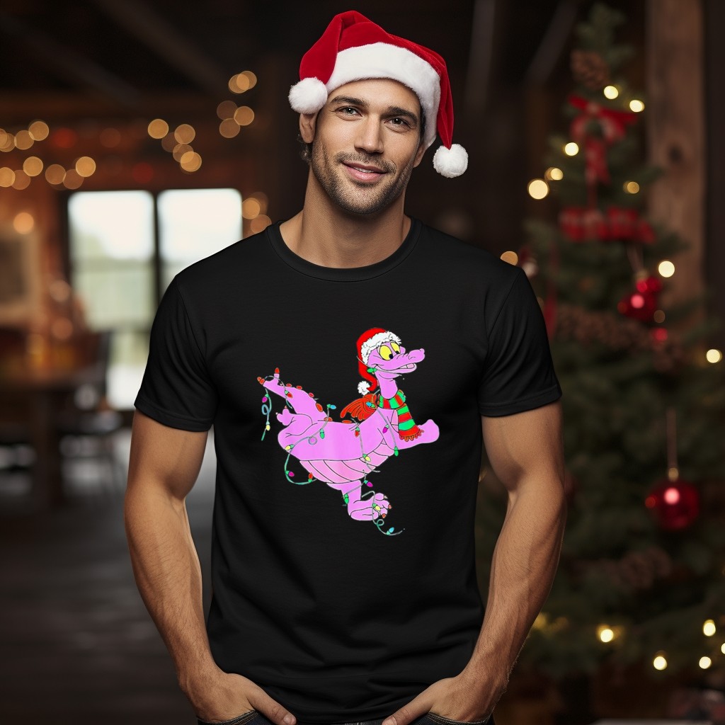 Celebrate the holiday season with our whimsical Dragon Figment in Santa Hat Wrapped In Christmas Lights T-Shirt! Perfect for fans of all ages, this playful design brings festive cheer to casual outings, themed events, or daily wear. Made with love and printed in the USA, this shirt is not just a clothing item; it’s a statement of joy and creativity that will light up any occasion.