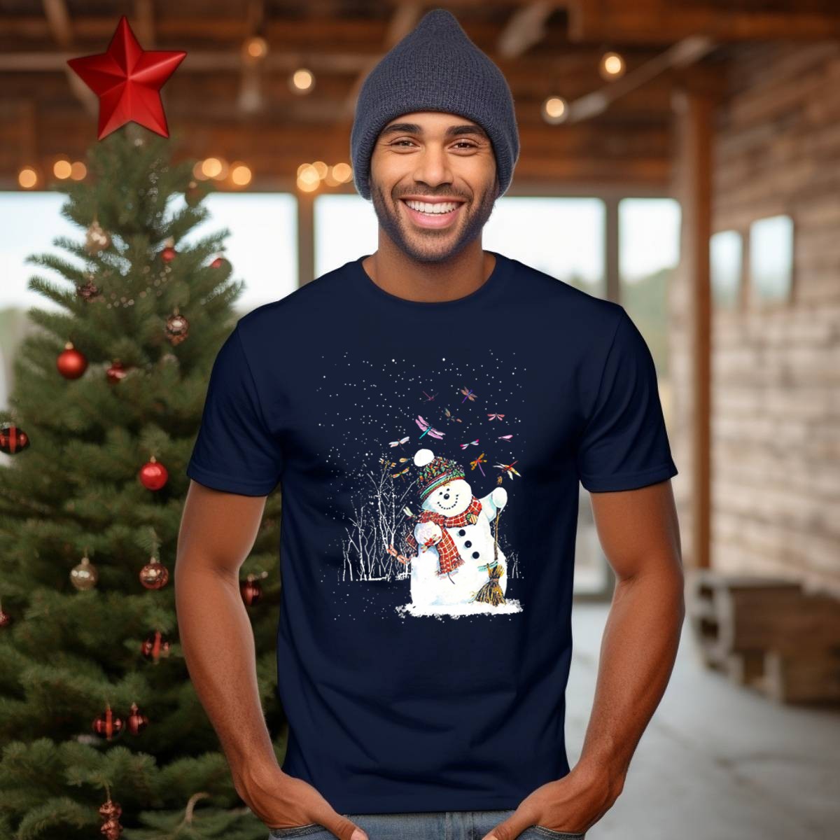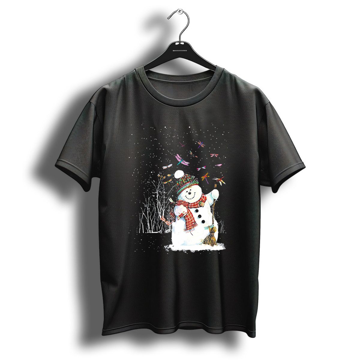 Celebrate the magic of the season with our Dragonfly Christmas Snowman T-Shirt! This playful design features a whimsical snowman surrounded by vibrant dragonflies, making it perfect for anyone who loves unique holiday flair. Ideal for casual wear, themed events, or simply spreading festive cheer, this shirt is sure to become a favorite in your wardrobe. Made with care in the USA, it combines comfort and creativity for a truly special piece.