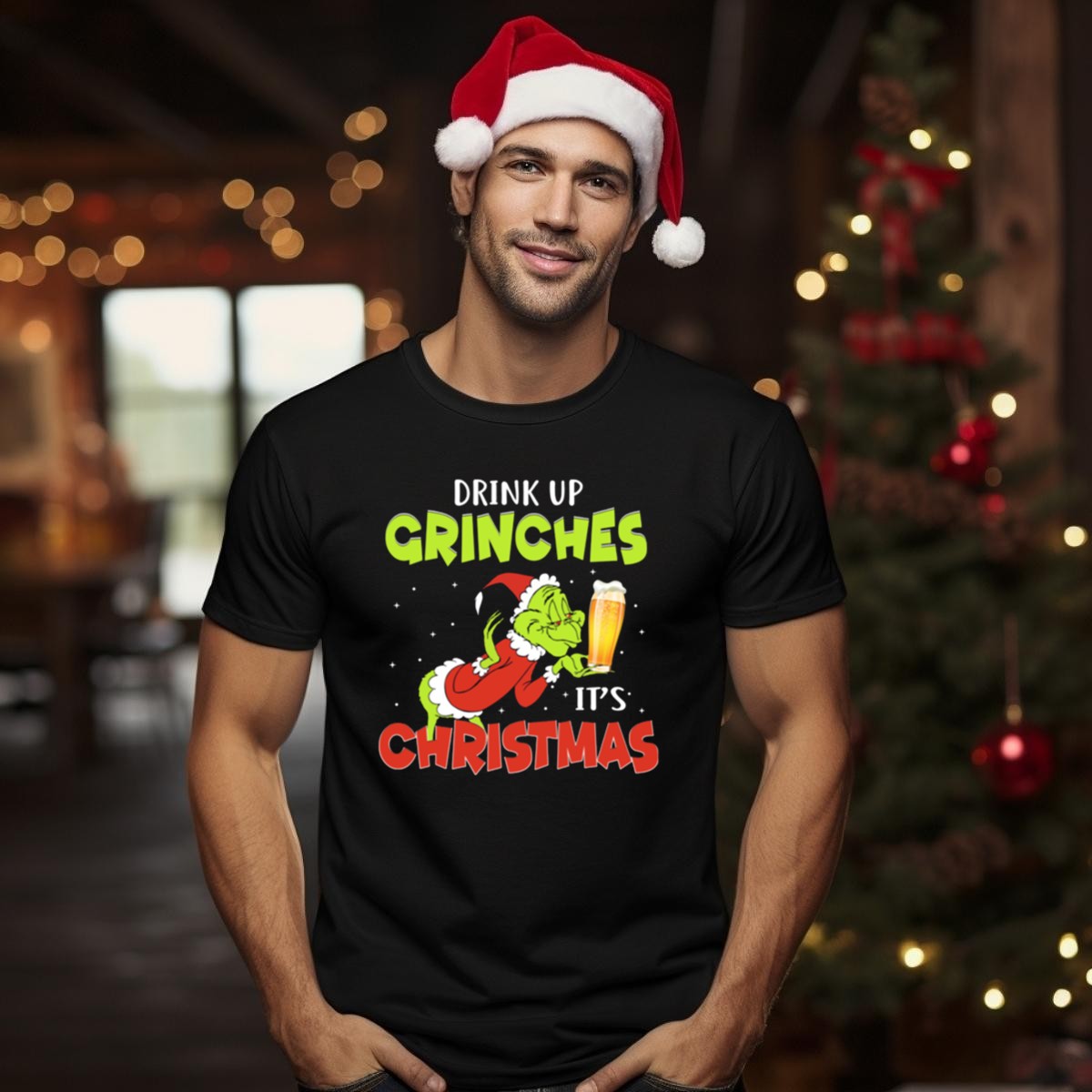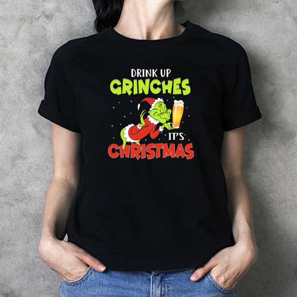 Celebrate the holiday spirit with our “Drink Up Grinches It’s Christmas” T-shirt, featuring a playful design of Santa Grinch holding a beer. This fan-made graphic tee is perfect for those who love to spread cheer during the festive season. Whether you’re heading to a holiday party, a themed event, or just enjoying a casual day out, this shirt is sure to turn heads and spark conversations. Made in the USA, it combines comfort and style for a unique addition to your seasonal wardrobe.
