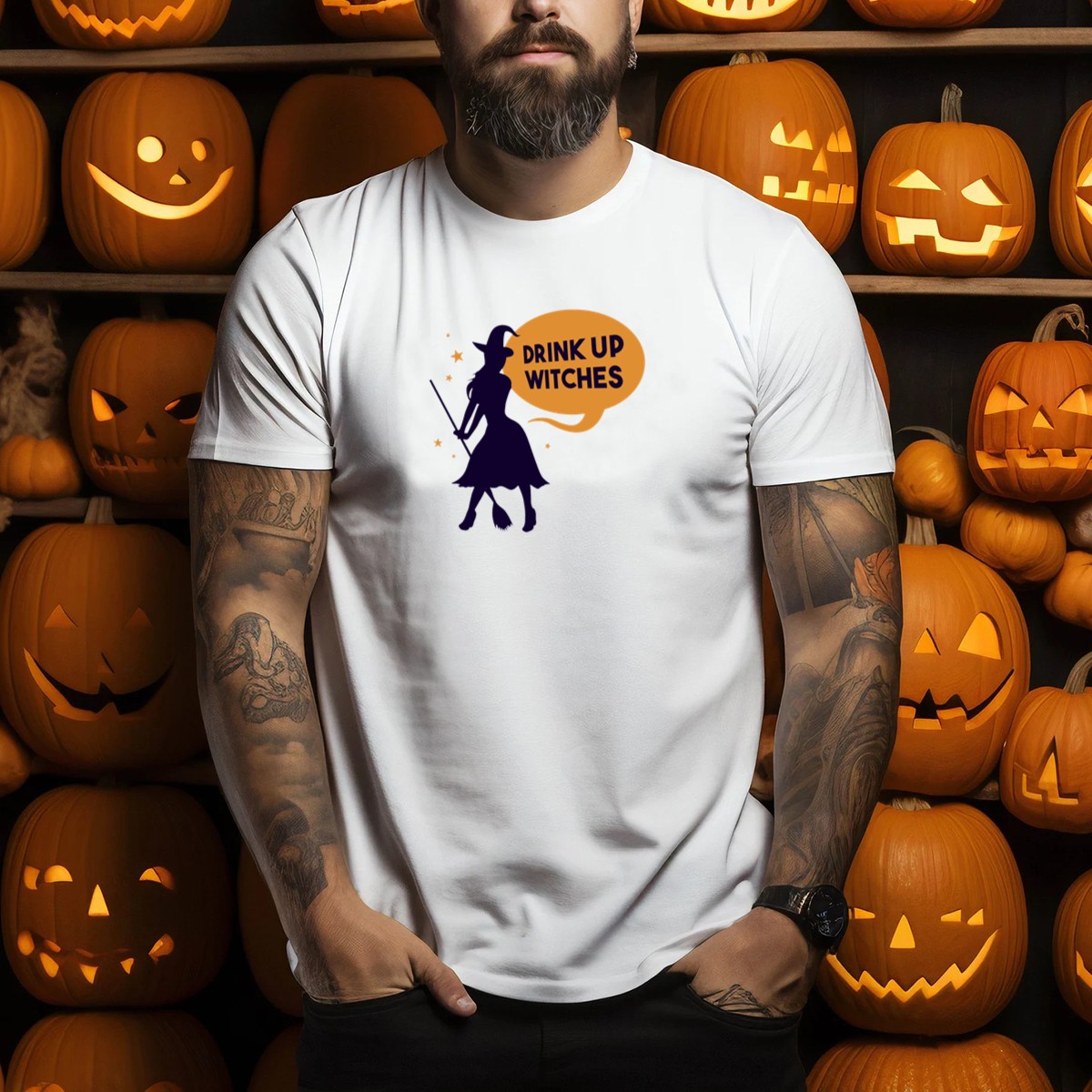 Get ready to celebrate Halloween in style with our “Drink Up Witches” T-shirt, featuring a captivating silhouette design of witches on broomsticks surrounded by stars. Perfect for those who love a little magic and mischief, this shirt is ideal for themed events, casual outings, or just showing off your spooky spirit during the fall season. Made for witches and fans alike, this fan-made design is printed right here in the USA, ensuring a unique touch that sets you apart from the crowd.