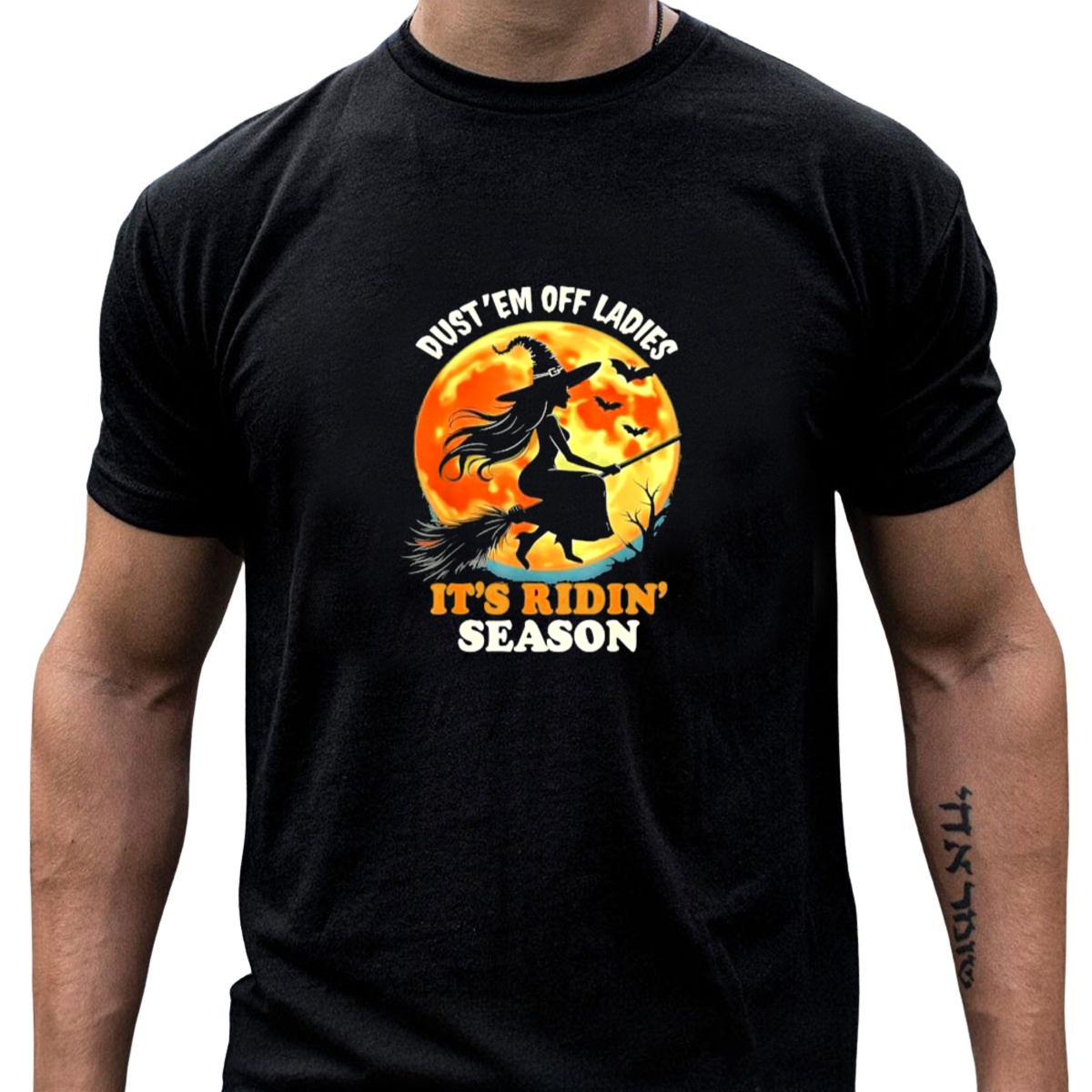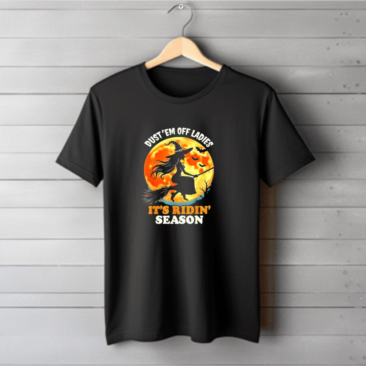 Be the first to review “Dust Em Off Ladies Its Ridin Season Halloween Witch Silhouette Full Moon T-Shirt”