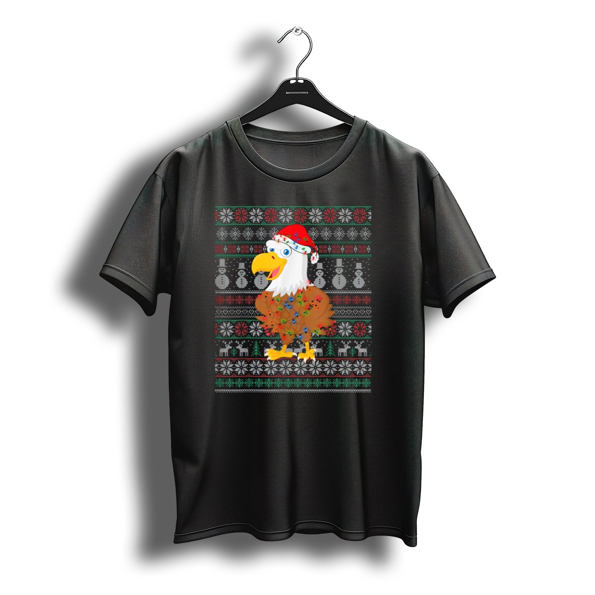 Celebrate the festive season in style with our Eagle Ugly Christmas Sweater T-Shirt! This fun and quirky design features cheerful snowmen, playful reindeer, and vibrant lights, all topped off with a Santa hat, making it the perfect choice for holiday gatherings, themed events, or casual daily wear. Crafted for comfort and durability, this shirt is ideal for anyone looking to spread holiday cheer while staying cozy and fashionable.