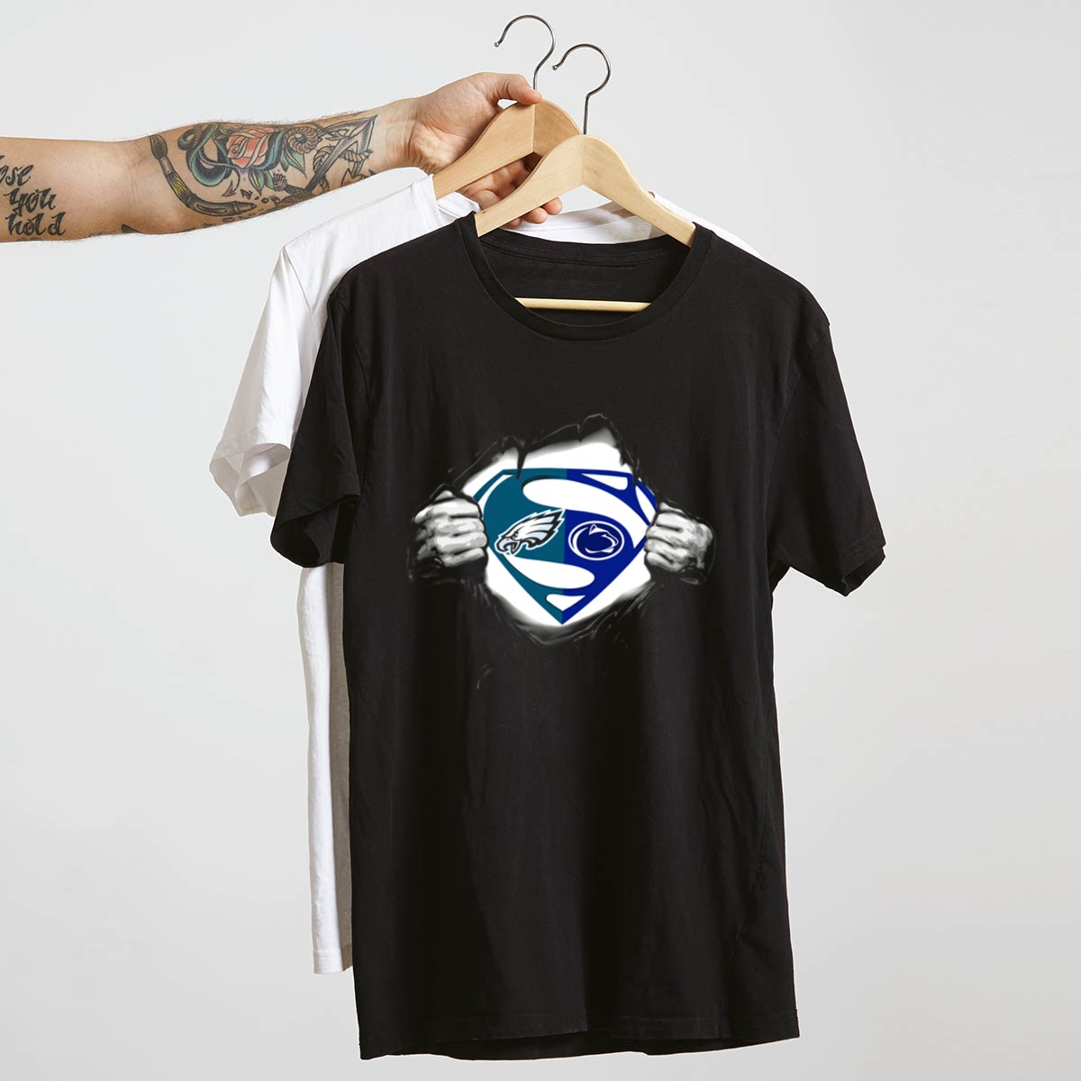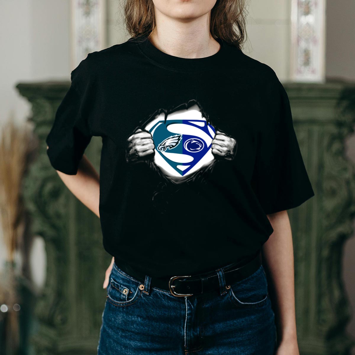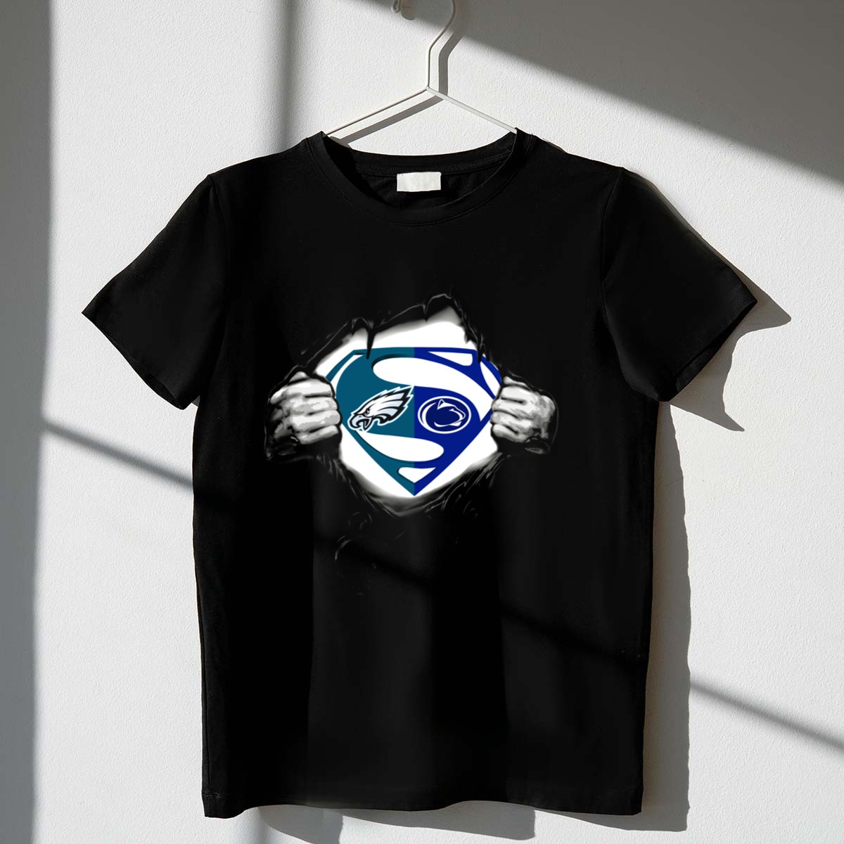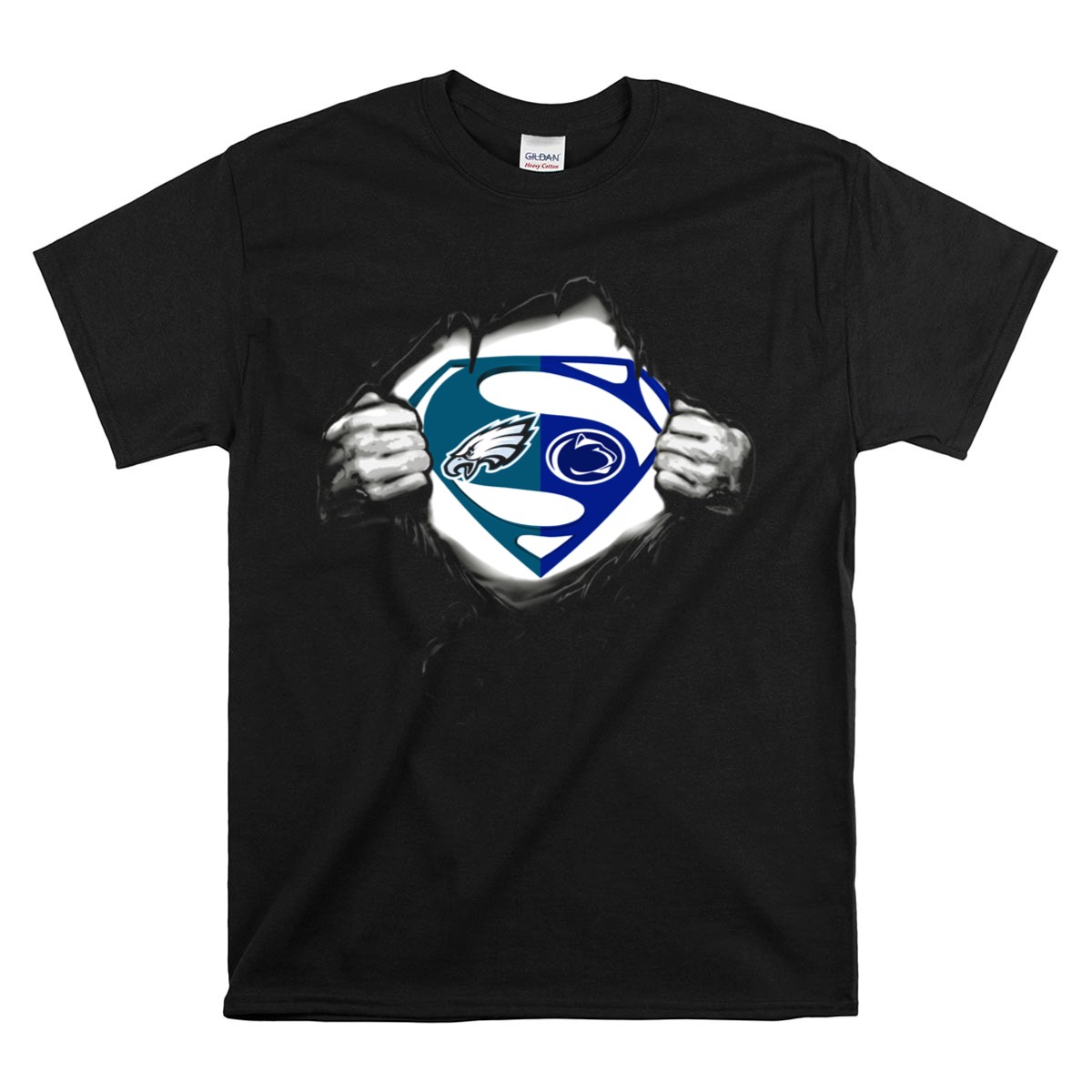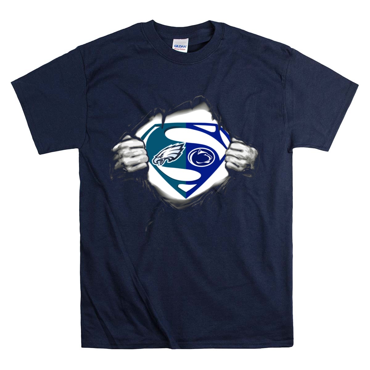 Show your fierce loyalty to the Penn State Nittany Lions with this unique Eagles Superman logo mashup T-shirt! Perfect for fans of all ages, this shirt is a fantastic addition to your casual wear collection, ideal for game days, themed events, or simply showcasing your team spirit in everyday life. Crafted for comfort and style, this shirt features a fan-made design printed right here in the USA, making it a standout piece for any sports enthusiast.