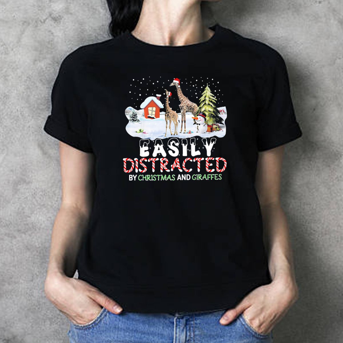 Celebrate the holiday season with our “Easily Distracted By Christmas And Giraffes In Snowy Holiday Scene With Santa Hats” T-shirt! This whimsical design is perfect for animal lovers and festive spirits alike, making it an ideal choice for casual wear, themed events, or simply brightening up your daily routine. Made in the USA, this fan-made graphic tee brings a unique twist to your holiday wardrobe, adding a touch of fun and cheer to any occasion.