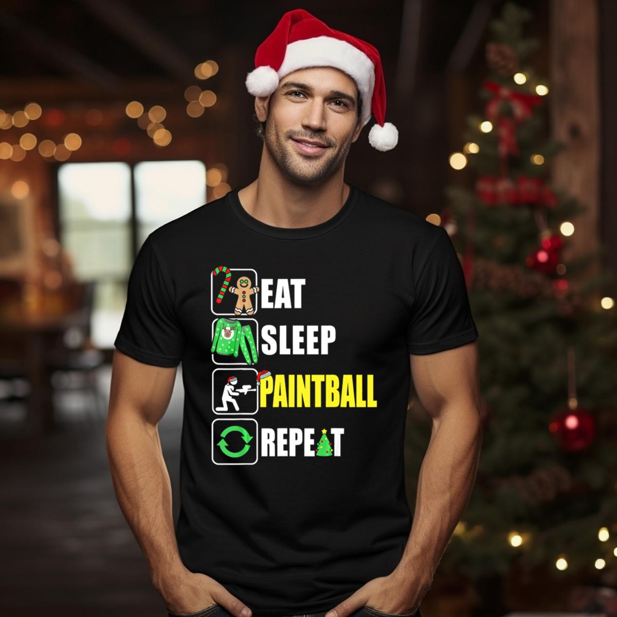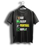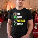 Celebrate the festive season with our “Eat Sleep Paintball Repeat” T-shirt, a perfect blend of holiday cheer and passion for paintball! This fan-made design features a whimsical Christmas theme complete with candy canes, gingerbread, and Santa hats, making it an ideal choice for paintball enthusiasts who want to spread joy and laughter during themed events or casual outings. Crafted for comfort and style, this T-shirt is sure to be a hit at parties and gatherings throughout the winter season.