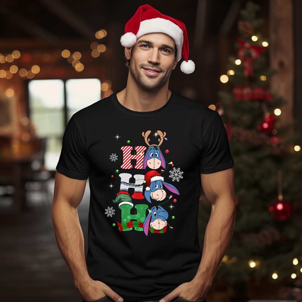 Embrace the festive spirit with our Eeyore Christmas Donkey Santa Reindeer Ho Ho Ho Snowflakes T-Shirt! Perfect for Disney fans and anyone looking to add a touch of whimsy to their holiday wardrobe, this shirt is a playful nod to the beloved character Eeyore. Whether you’re attending a family gathering, a themed event, or simply enjoying a cozy day at home, this unique, fan-made design will keep you in high spirits all season long.