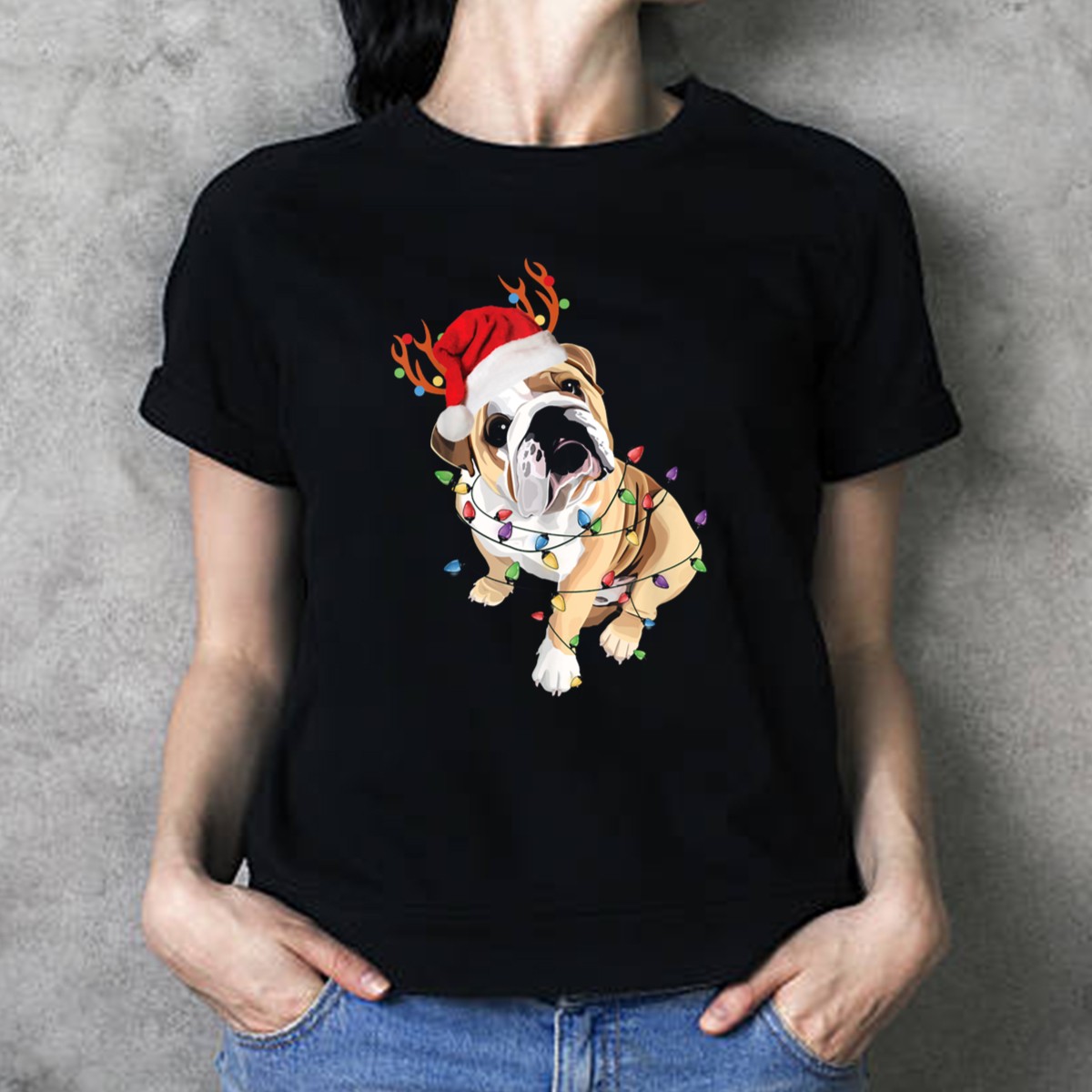 Be the first to review “English Bulldog Christmas Lights Santa Hat Reindeer Antlers T-Shirt”