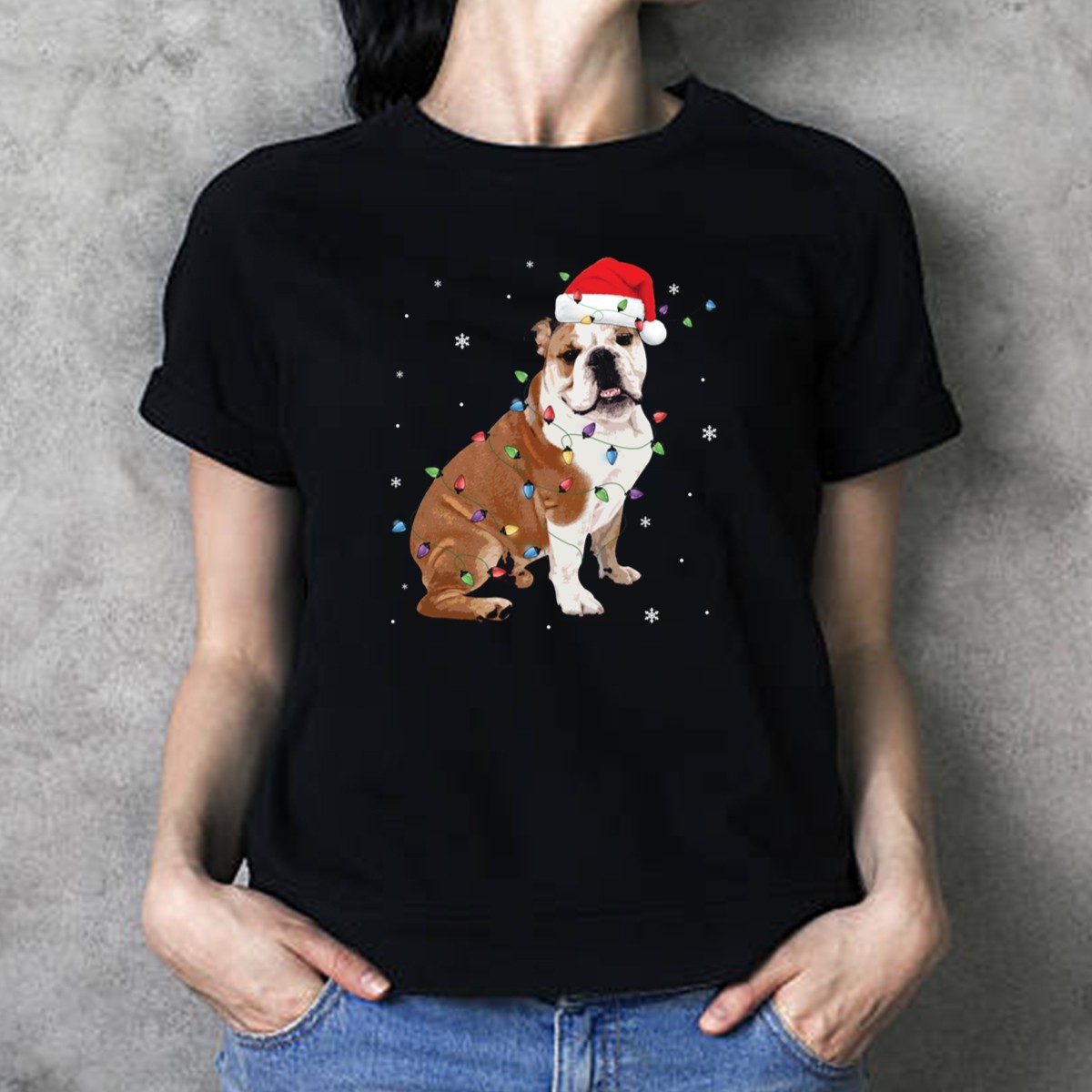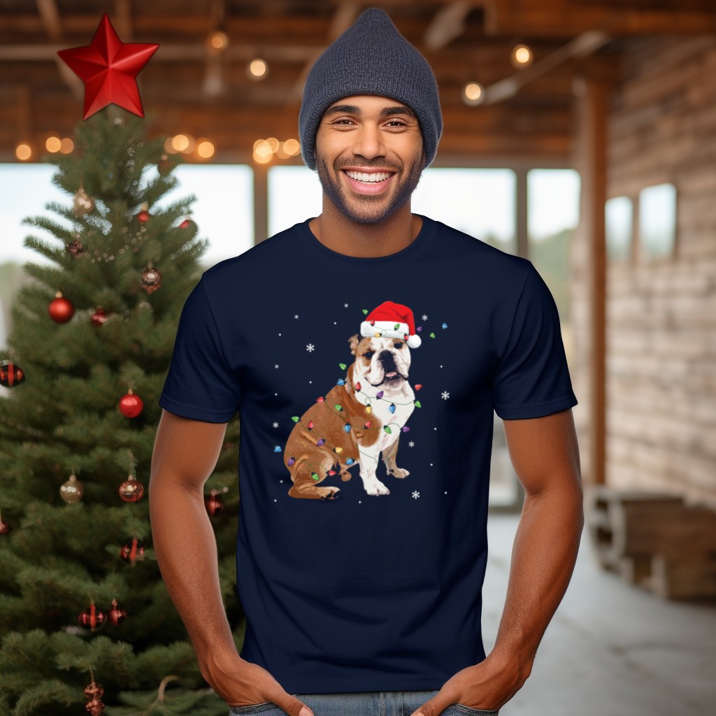 Celebrate the holiday season in style with our English Bulldog Christmas Lights Santa Hat Snowflakes T-Shirt! Perfect for dog lovers and festive enthusiasts alike, this shirt features an adorable graphic that captures the spirit of Christmas with a fun twist. Whether you’re attending a holiday party, decorating your home, or just enjoying a cozy day, this tee makes a unique statement and showcases your love for English Bulldogs in a playful way.