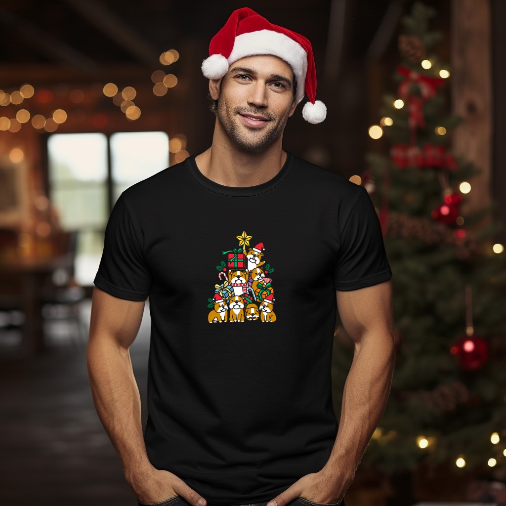 Celebrate the holiday season with our charming English Bulldog Christmas Tree T-shirt! Perfect for dog lovers and festive spirit enthusiasts alike, this delightful tee showcases a playful design featuring adorable bulldogs donning Santa hats amidst vibrant Christmas trees and gifts. Ideal for casual wear, themed events, or simply spreading cheer during the holidays, this shirt is sure to become a favorite in your wardrobe. Made with love and printed in the USA, it brings together style and comfort for all-season enjoyment.
