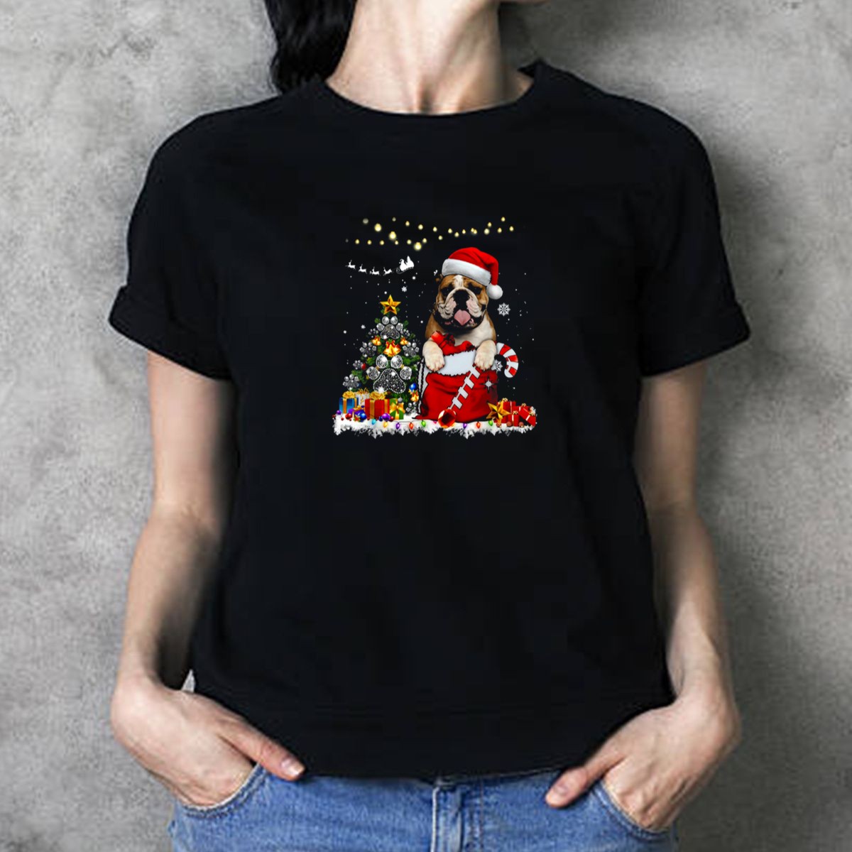 Celebrate the festive season with our English Bulldog Santa Hat Christmas Tree Lights Ornaments T-Shirt! Perfect for dog lovers and holiday enthusiasts alike, this charming graphic tee showcases a playful design that brings joy to any themed event or casual gathering. Made for comfort and style, it’s the ideal choice for all-season wear, ensuring you spread holiday cheer wherever you go. Show off your love for English Bulldogs in a fun and unique way!