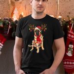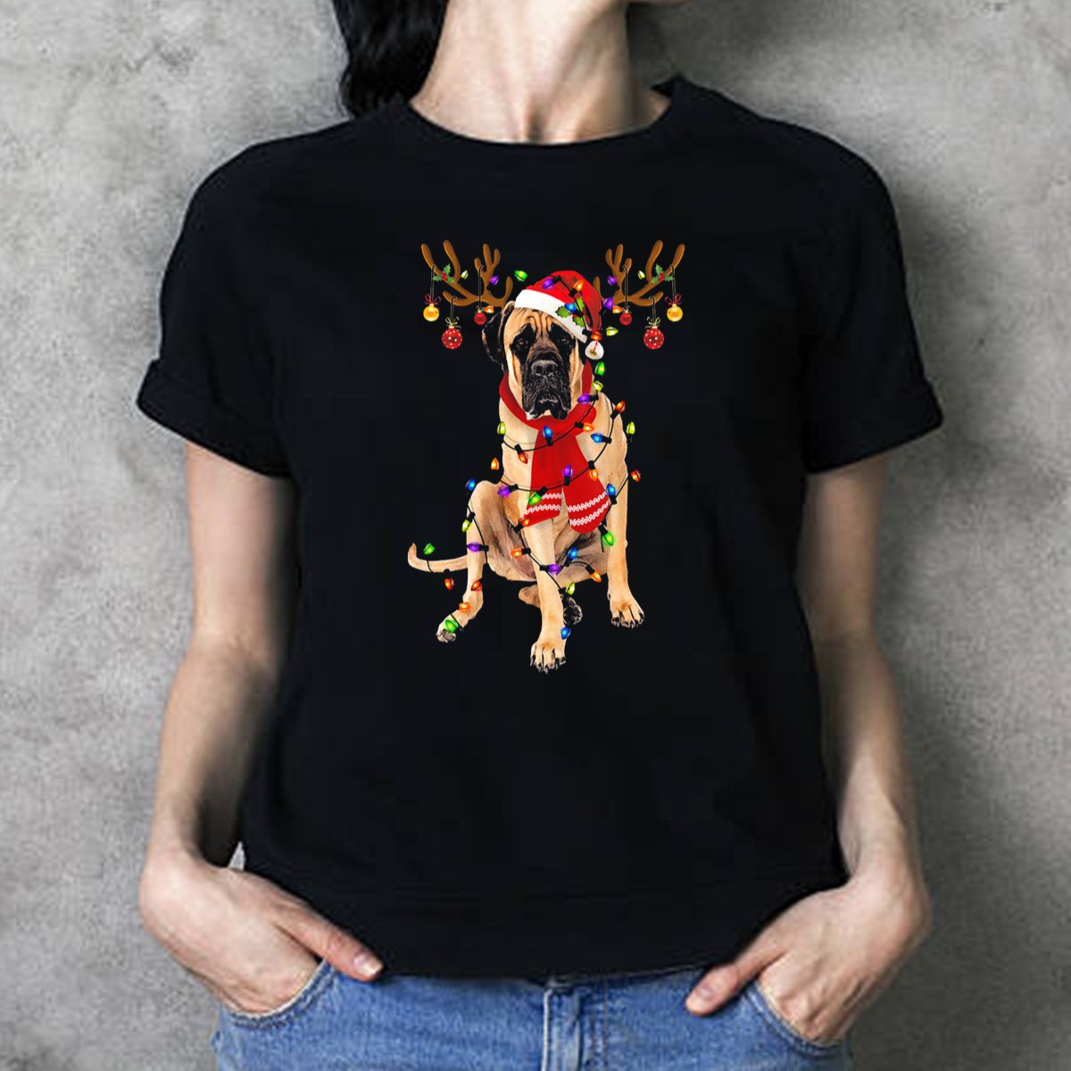 English Mastiff Christmas Lights Reindeer Antlers Santa Hat Scarf T Shirt