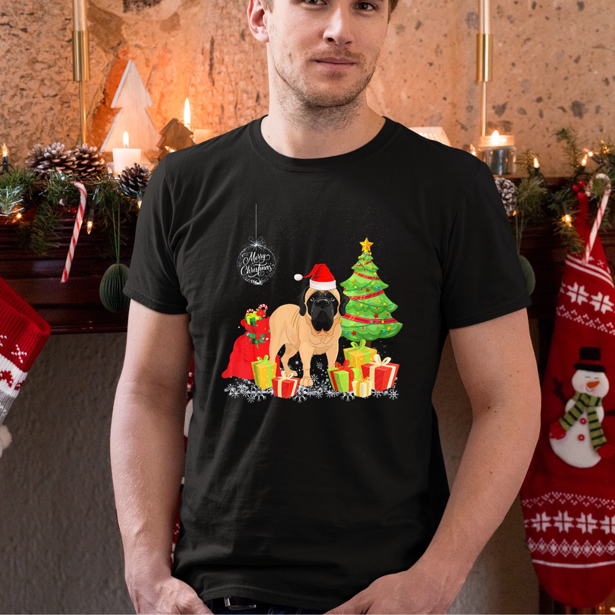 Celebrate the holiday season with our English Mastiff Merry Christmas Santa Hat Gifts Tree T-Shirt! Perfect for dog lovers and holiday enthusiasts alike, this fan-made design showcases your love for the gentle giant while spreading festive cheer. Whether you’re attending a themed event or simply enjoying a casual day out, this shirt will keep you stylish and comfortable all season long. Printed in the USA, it’s a unique addition to your holiday wardrobe!