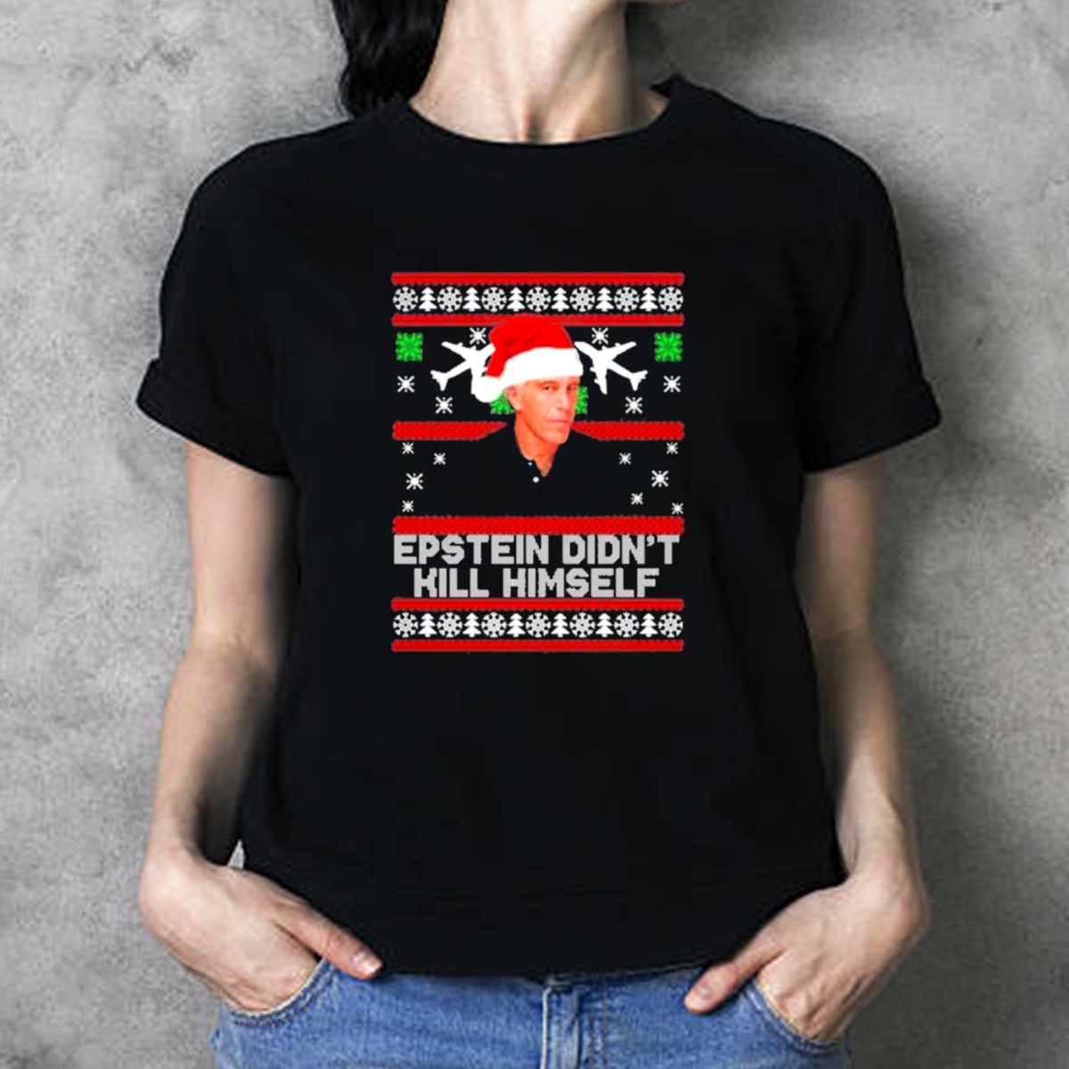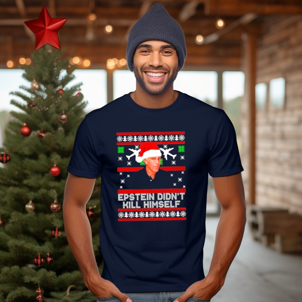 Introducing the Epstein Didn’t Kill Himself Santa Hat Airplane Ugly Christmas T-Shirt, a must-have for anyone looking to add a touch of humor to their holiday wardrobe! This fan-made design is perfect for those who enjoy a playful nod to current events while celebrating the festive season. Ideal for casual wear, themed events, or just lounging around, this shirt is sure to spark conversations and bring smiles wherever you go. Made with care in the USA, it combines comfort with a cheeky twist that stands out in any holiday gathering.