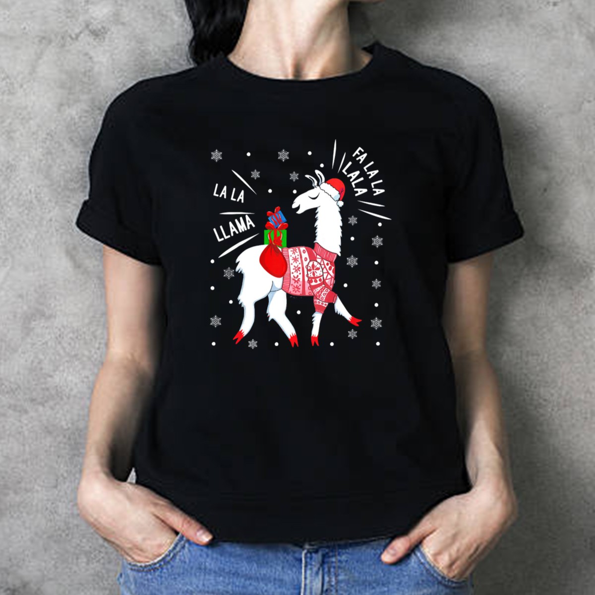 Be the first to review “Fa La La Fa La La La La Llama Christmas Santa Hat Sweater Snowflakes T-Shirt”