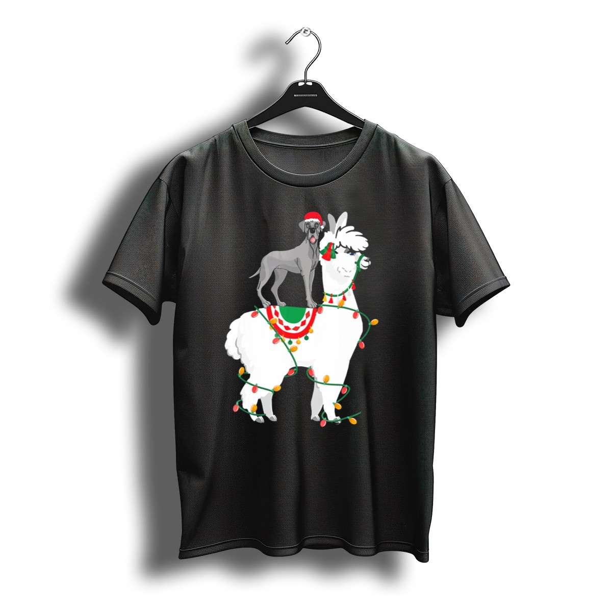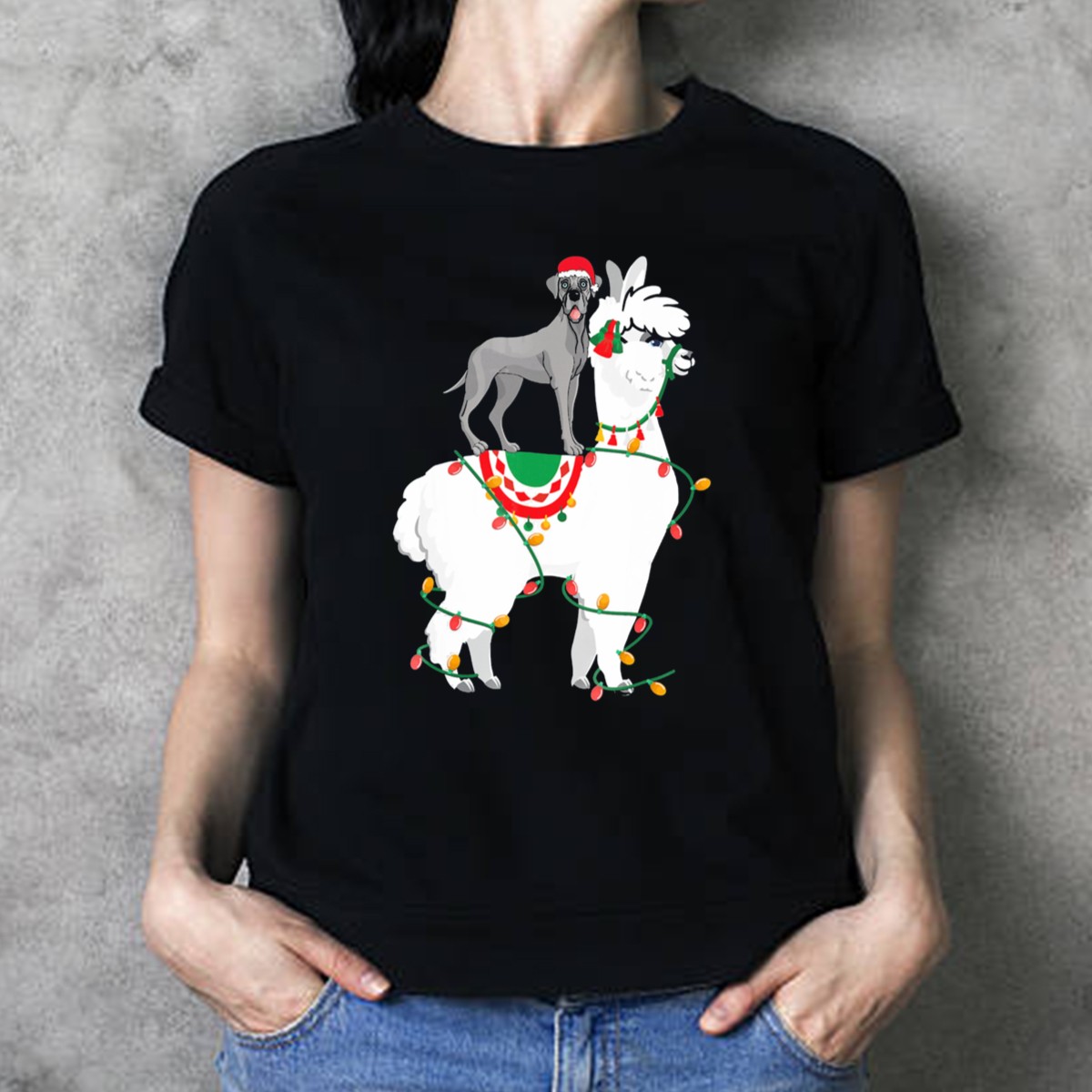 Get into the festive spirit with our Fa La Llama Great Dane T-Shirt, featuring an adorable llama decked out in Christmas lights and a Santa hat! Perfect for dog lovers and llama enthusiasts alike, this fun graphic tee is ideal for casual wear during holiday gatherings, themed events, or simply to spread some cheer throughout the day. Made with a fan-made design printed in the USA, it’s a unique addition to your seasonal wardrobe that showcases your love for animals and holiday fun.