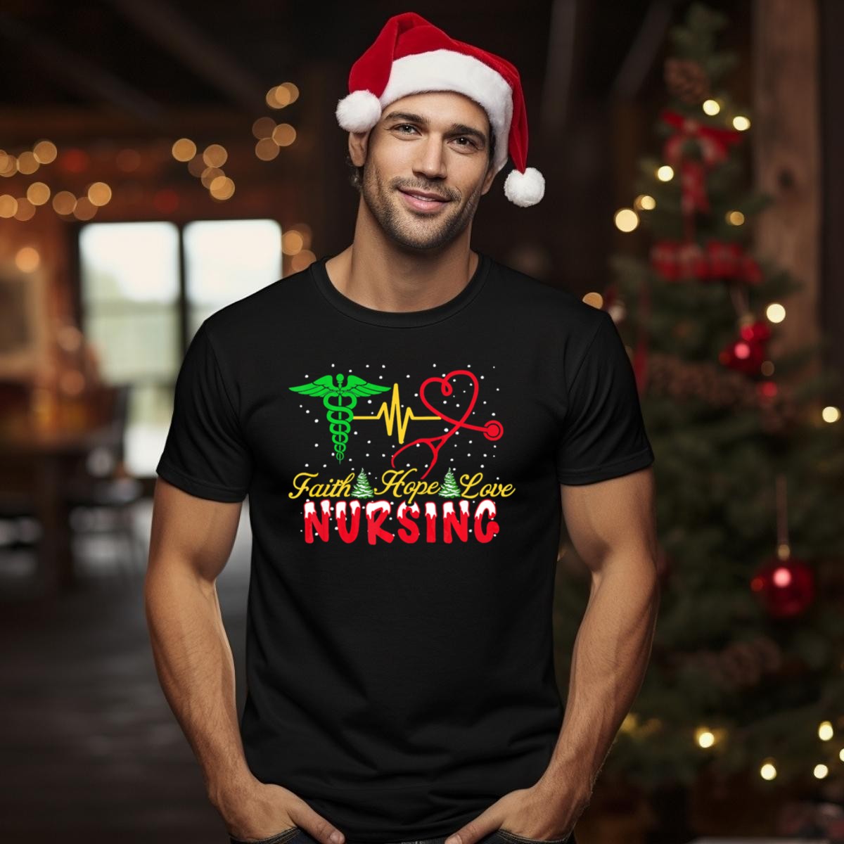 Show your passion for nursing this holiday season with our Faith Hope Love Nursing Christmas Caduceus Heartbeat T-Shirt. Perfect for nurses, caregivers, and healthcare professionals, this shirt combines festive spirit with a heartfelt message, making it ideal for casual wear, themed events, or daily duties. With its unique fan-made design printed in the USA, you can wear it proudly while spreading joy and compassion during the holidays.