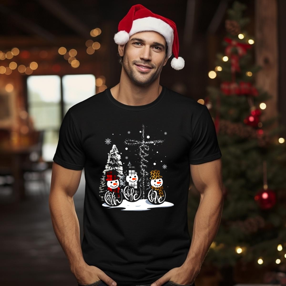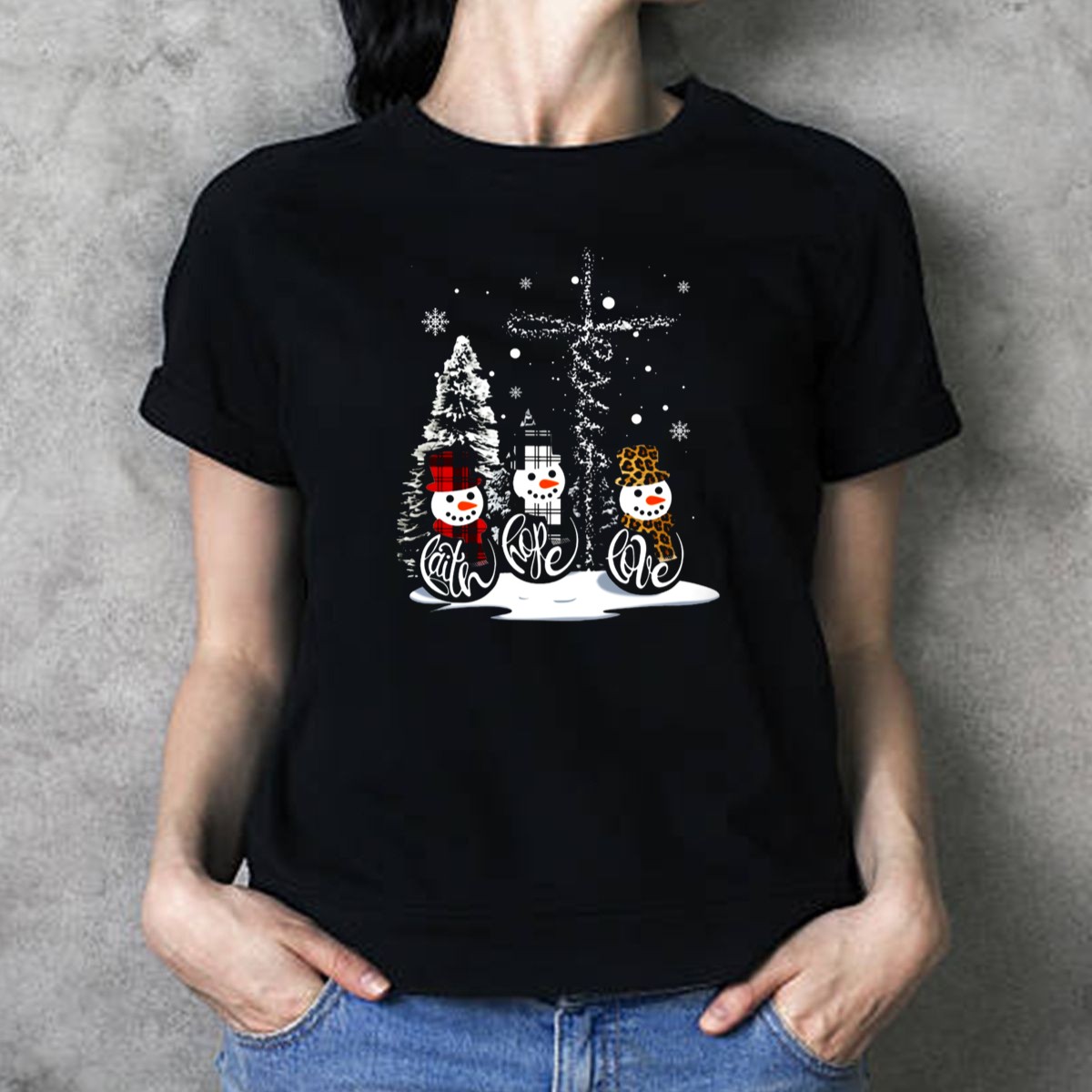 Celebrate the joy of the season with our Faith Hope Love Snowmen Jesus Christmas Leopard Plaid T-Shirt! Perfect for those who embrace the holiday spirit, this fan-made design combines whimsical snowmen with a trendy leopard plaid pattern, making it an ideal choice for casual wear, themed events, or daily outings during the festive season. Printed in the USA, this shirt is not just a clothing item; it’s a heartfelt expression of faith and love.