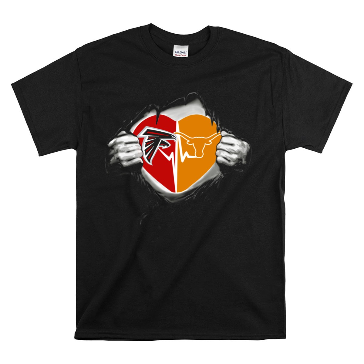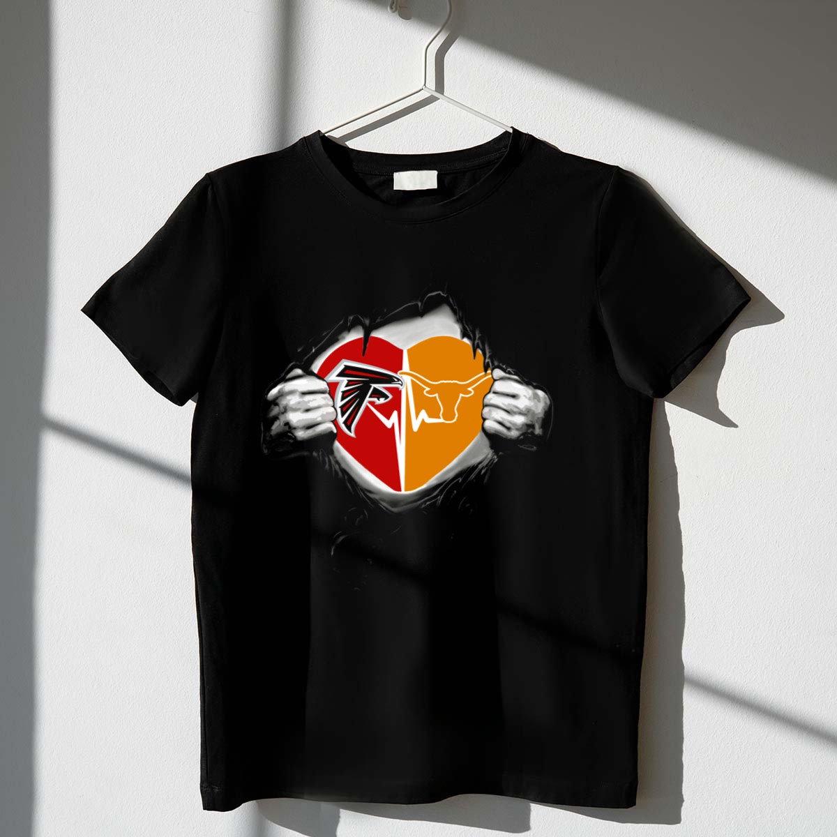 Show your unwavering support for the Texas Longhorns with our Falcons Texas Longhorns Heart Emblem With Strength Display T-Shirt. Perfect for fans of all ages, this shirt is designed for casual wear, themed events, or simply showing off your Longhorn pride in your everyday life. Made for comfort and style, this fan-made design showcases a heart emblem that symbolizes strength and loyalty to your team, making it a must-have addition to your wardrobe.