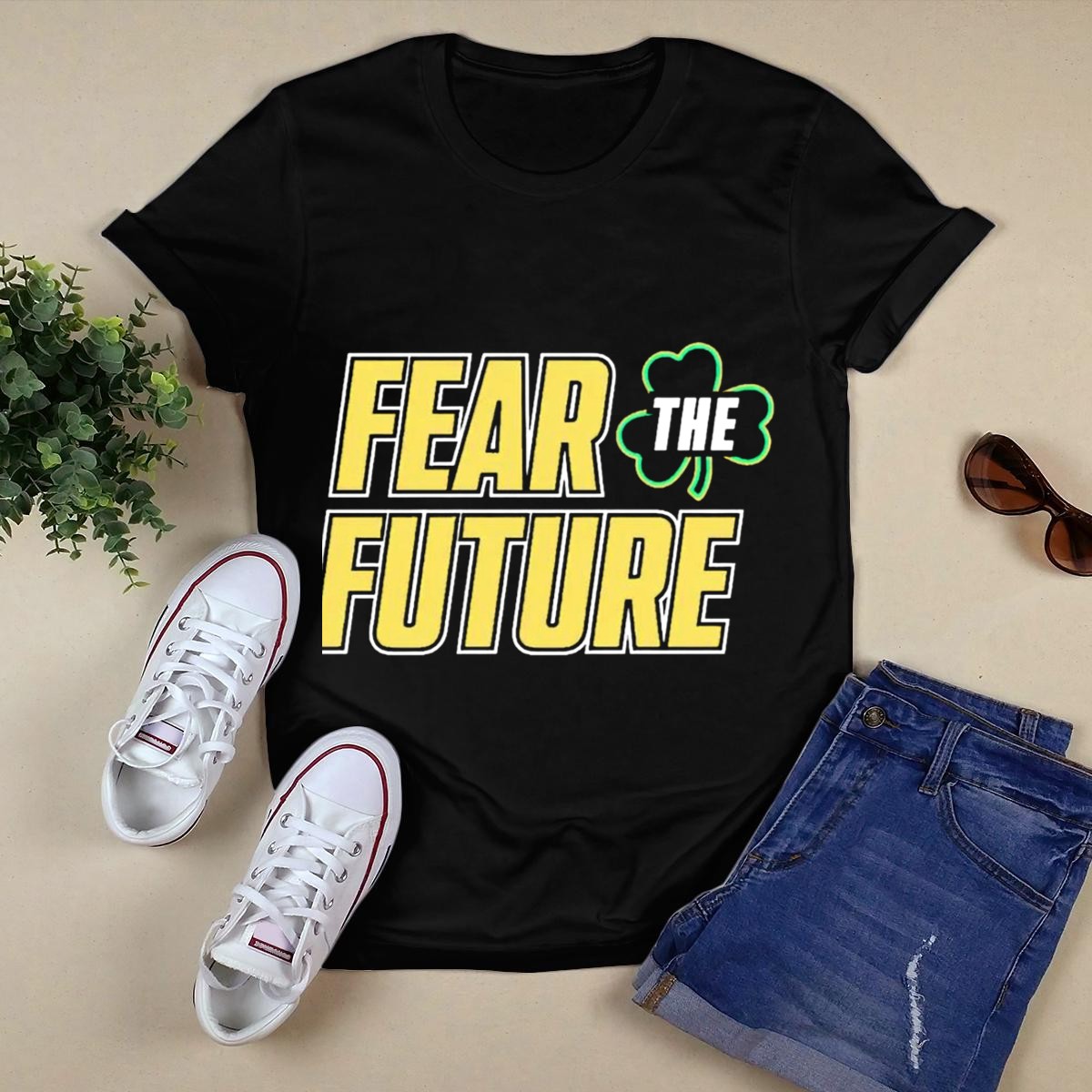 Embrace your passion for the Notre Dame Fighting Irish with our Fear the Future T-Shirt, designed for true fans who want to showcase their spirit in style. This fan-made design features a bold shamrock graphic, perfect for game days, casual outings, or themed events. Crafted for comfort and durability, this classic fit tee is an ideal choice for any occasion, allowing you to represent your team proudly all season long.