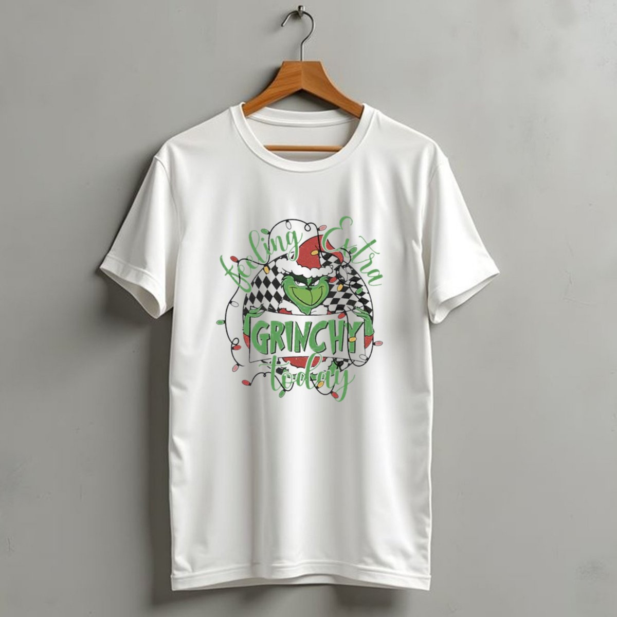 Embrace the holiday spirit with our “Feeling Extra Grinchy Today” Checkered Christmas Lights T-Shirt! Perfect for those who love to add a playful twist to their festive wardrobe, this tee is ideal for casual wear, themed events, or just spreading some Grinchy cheer during the holiday season. Made for fans who appreciate a bit of whimsy in their style, this shirt is sure to become a favorite for all your seasonal gatherings.