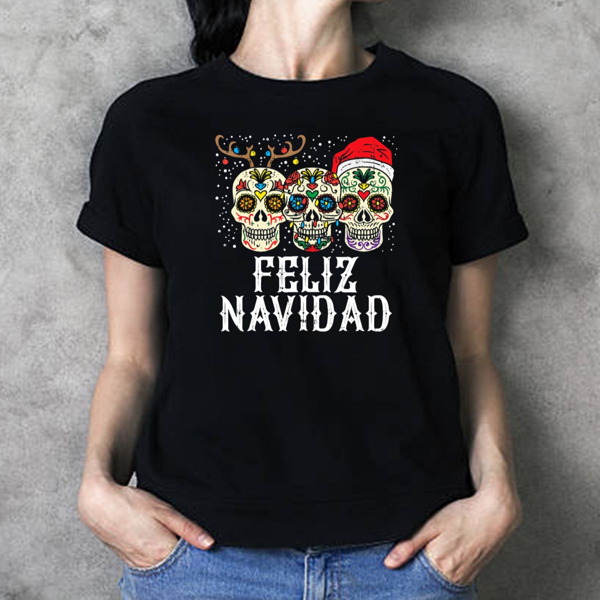 Celebrate the festive spirit with our Feliz Navidad Sugar Skulls Reindeer Santa Fun Christmas Holiday Cheer T-Shirt! Perfect for anyone who loves to bring a touch of whimsy and joy to their holiday wardrobe, this shirt features a vibrant and playful design that embodies the true essence of Christmas cheer. Ideal for casual outings, themed events, or simply spreading holiday vibes, this shirt is a must-have for the season.