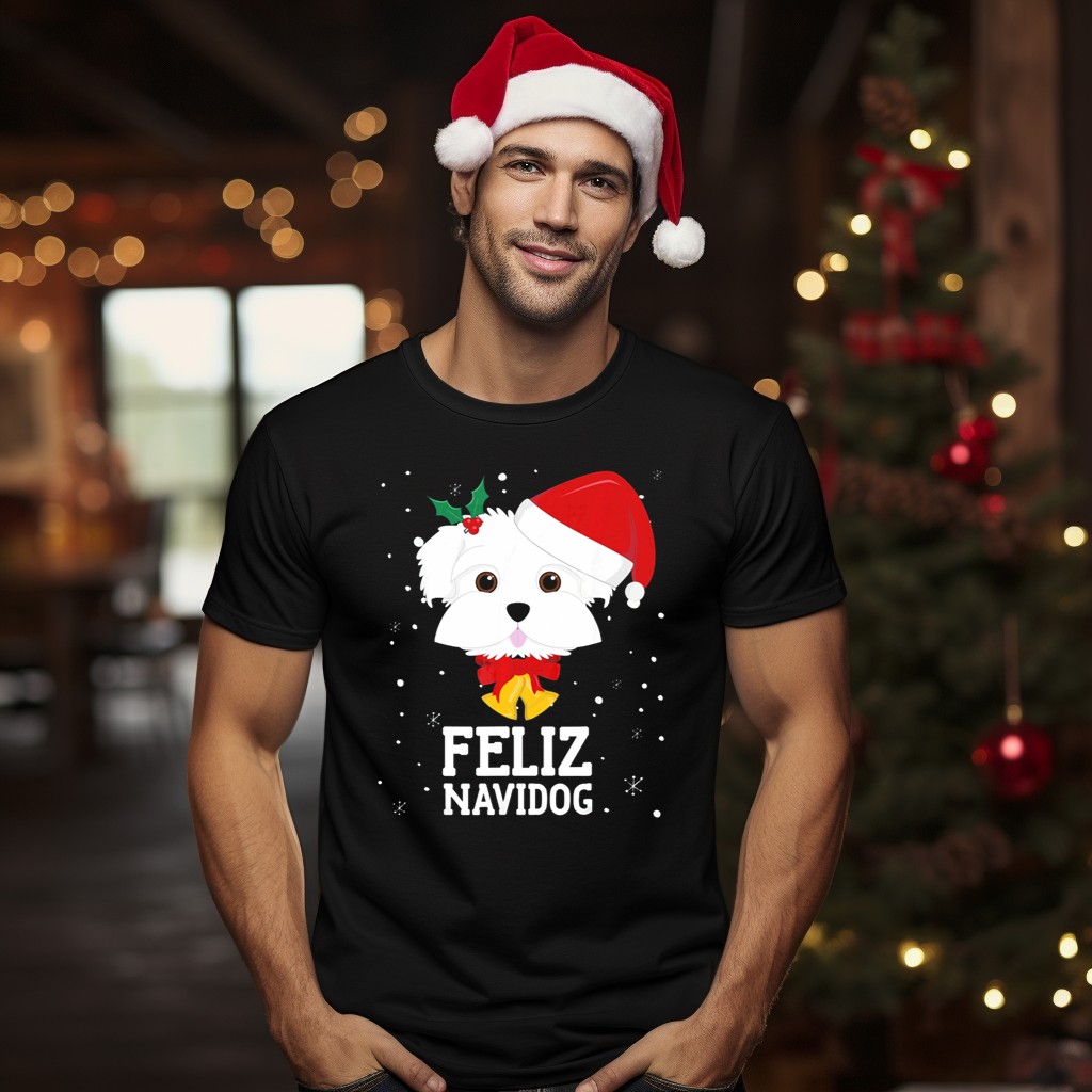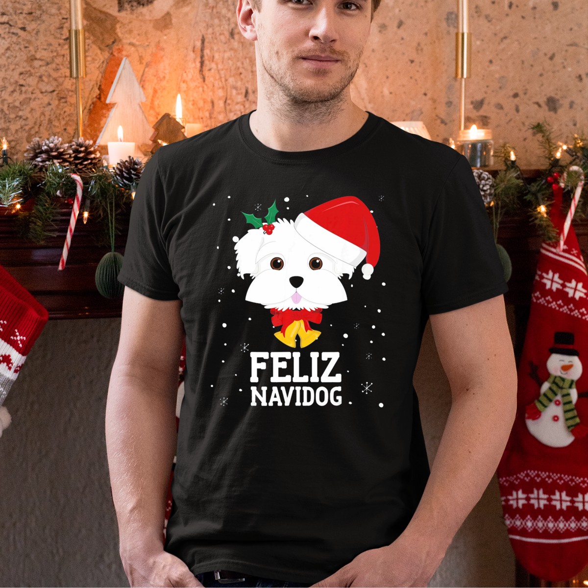 Celebrate the festive season with our Feliz Navidog Christmas Maltese Dog T-Shirt, perfect for dog lovers and holiday enthusiasts alike! This charming shirt features an adorable Maltese wearing a Santa hat, making it an ideal choice for Christmas gatherings, themed events, or simply spreading holiday cheer in your daily wear. Crafted with care, this fan-made design is printed in the USA, ensuring quality and uniqueness in every stitch.