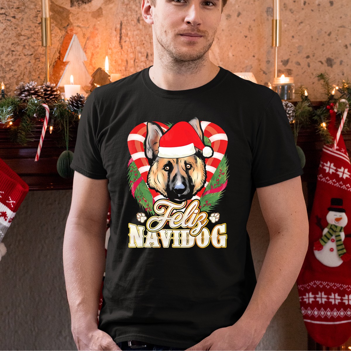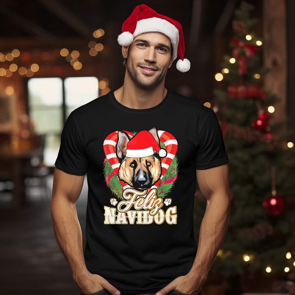 Celebrate the festive season with our Feliz Navidog German Shepherd Santa Hat Christmas Wreath T-Shirt! Perfect for dog lovers and holiday enthusiasts, this fun and whimsical design showcases your love for both your furry friend and the joyous spirit of Christmas. Whether you’re attending a themed party, enjoying a casual day out, or just celebrating the holidays at home, this shirt will keep you cozy and stylish all season long. Made with care in the USA, it’s the perfect way to spread cheer and show off your passion for German Shepherds.