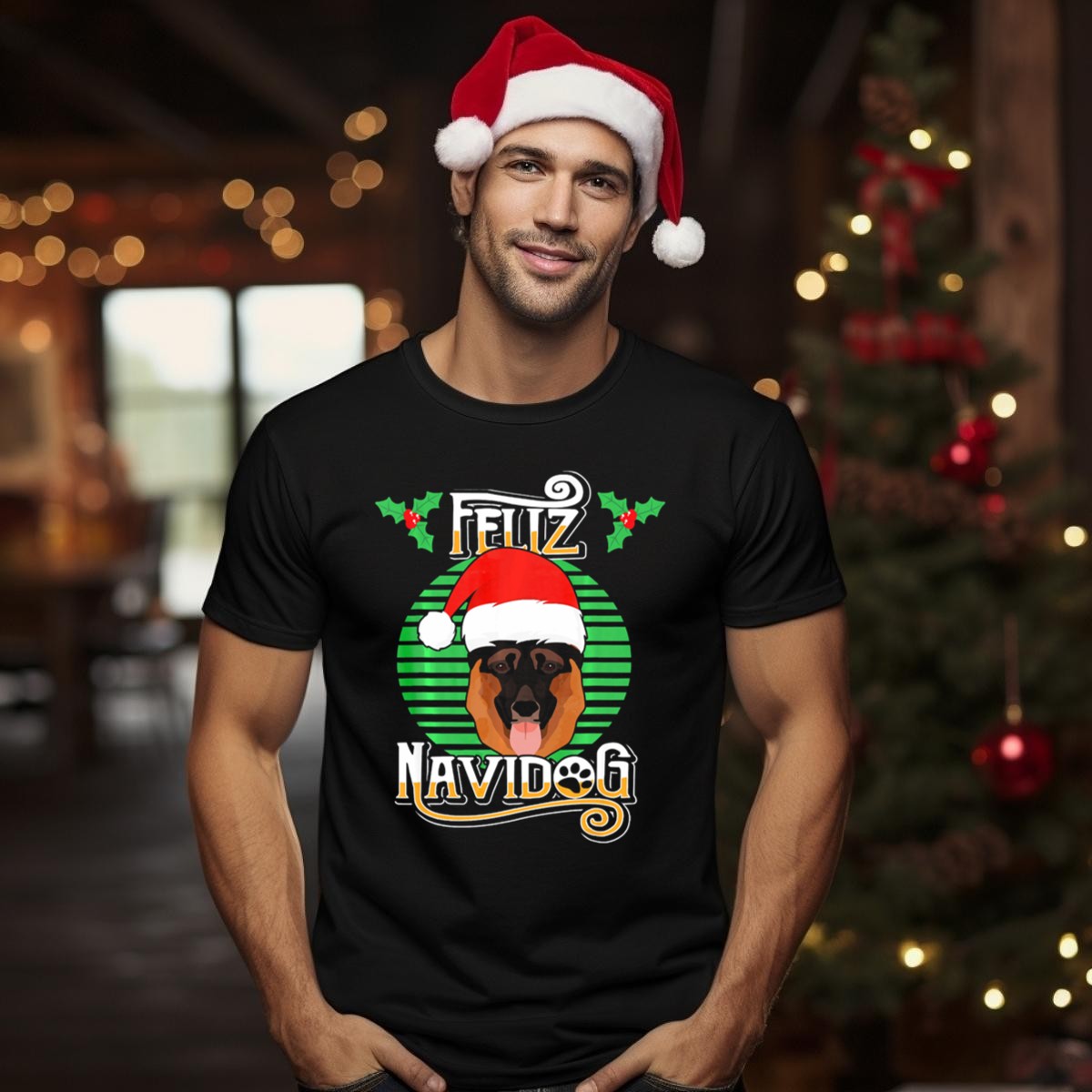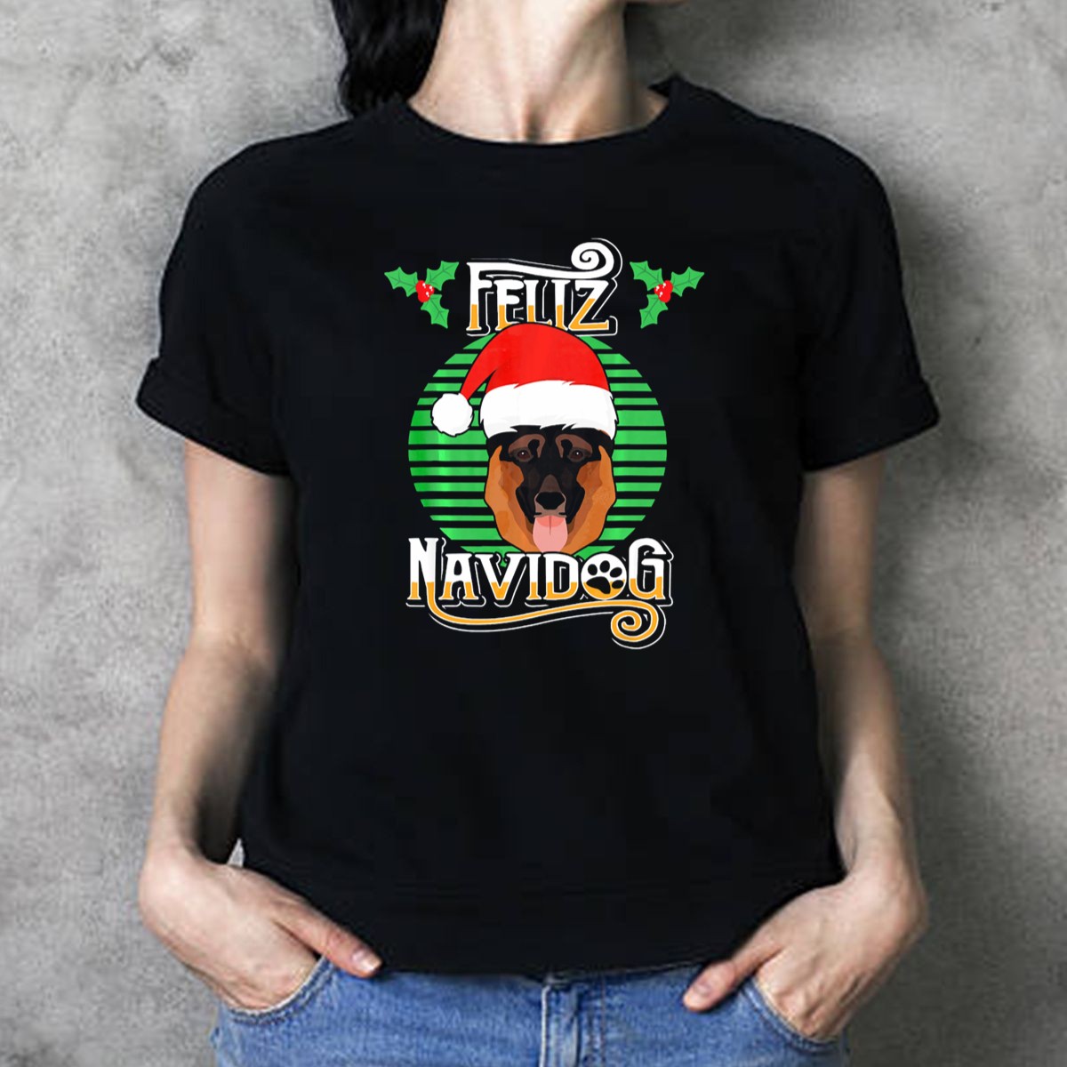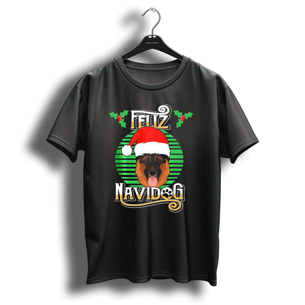 Celebrate the festive season with our Feliz Navidog German Shepherd Santa Hat Holly Christmas T-Shirt! Perfect for dog lovers and holiday enthusiasts alike, this fun and playful design features a charming German Shepherd dressed for the occasion, making it an ideal choice for casual gatherings, themed events, or simply spreading holiday cheer in your daily wear. Crafted for comfort and style, this shirt is a unique addition to your seasonal wardrobe.